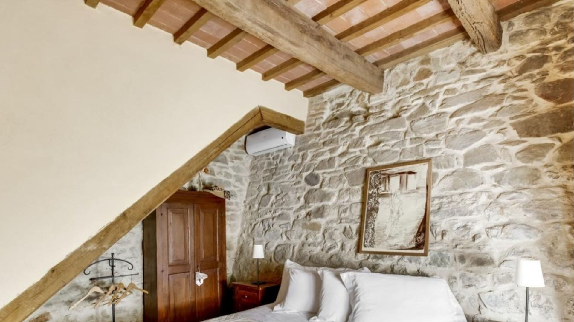 Questa residenza progettata con cura accoglie fino a 8 ospiti in 4 camere da letto e 3 bagni, distribuiti su più livelli che mostrano l'architettura storica della proprietà. Il piano terra vi accoglie con una spaziosa sala da pranzo e una cucina completamente attrezzata che si apre direttamente sul giardino, completata da una pratica dispensa e un ripostiglio dedicato. Un bagno con doccia completa le dotazioni del piano terra. Salendo al primo piano, scoprirete una camera matrimoniale dotata di bagno privato ensuite con doccia, che offre privacy e comfort. Questo livello ospita anche un generoso salone con un invitante camino, un'altra camera matrimoniale e un ampio bagno con doccia che serve le aree comuni. La vecchia torre, un elemento architettonico distintivo che racconta il passato storico del mulino, è stata trasformata per ospitare due ulteriori camere matrimoniali, offrendo alloggi unici che combinano fascino storico e comfort contemporaneo. La disposizione garantisce sia spazi comuni di ritrovo che rifugi privati, rendendola ideale per famiglie o gruppi in cerca di un'autentica esperienza toscana.