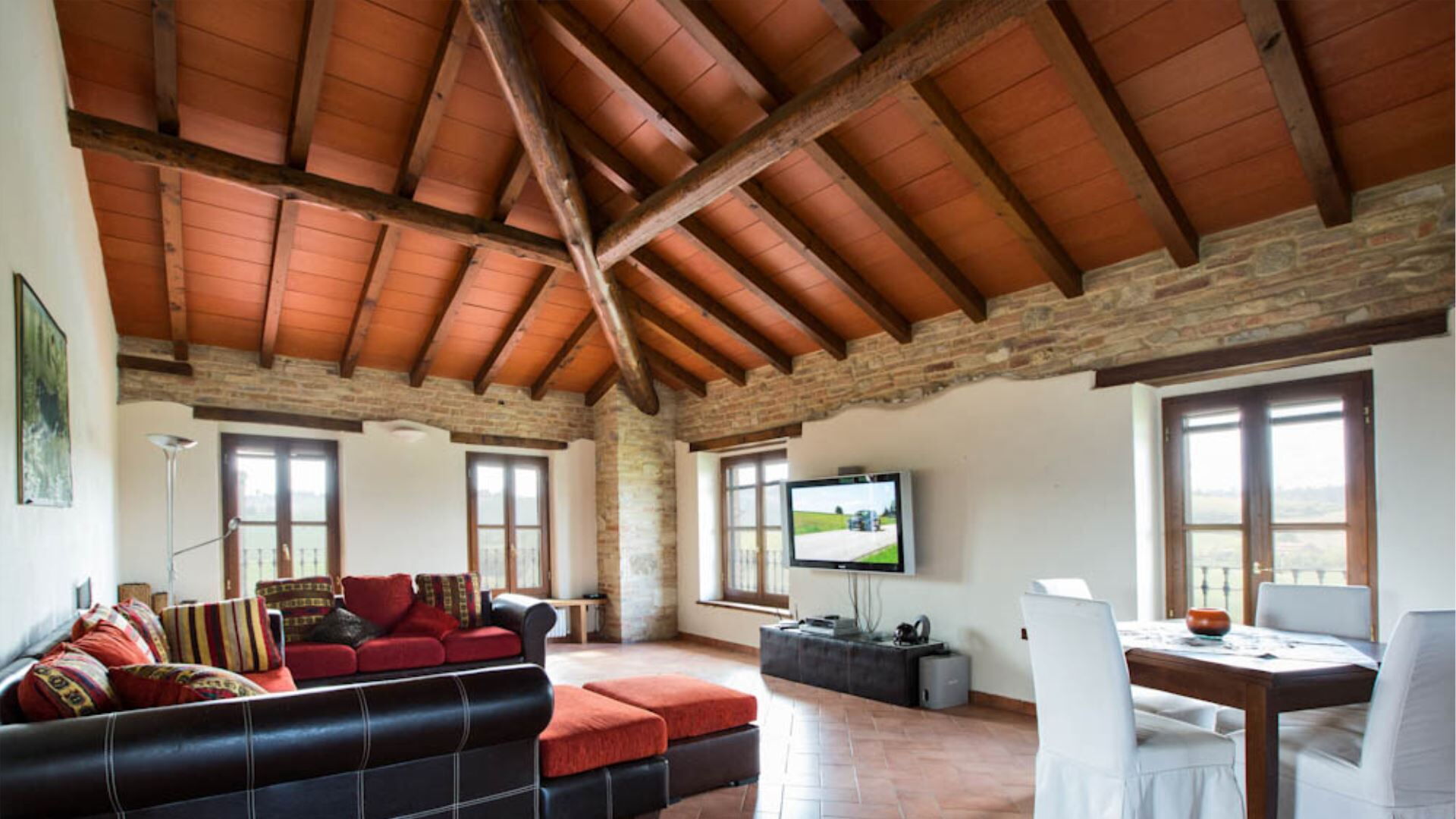 La villa si sviluppa su tre livelli, offrendo sistemazioni spaziose e confortevoli per un massimo di 10 ospiti in 5 camere da letto e 3 bagni. Il piano terra dispone di una cucina completamente attrezzata, una camera matrimoniale, una camera doppia e un bagno dotato di doccia idromassaggio. Salendo al primo piano, scoprirai un ampio soggiorno panoramico con zona pranzo dedicata che cattura viste panoramiche sulla campagna circostante, insieme a tre camere da letto aggiuntive composte da due camere matrimoniali e una camera doppia. Il primo piano ospita anche due bagni, uno dotato di doccia e l'altro con vasca da bagno. Il livello seminterrato contiene una caratteristica taverna con un caratteristico soffitto a volta a botte, offrendo uno spazio suggestivo per riunioni e intrattenimento. Questa distribuzione accurata delle stanze su più piani garantisce privacy e comfort per gruppi più numerosi, mantenendo al contempo il fascino autentico dell'architettura tradizionale emiliana.