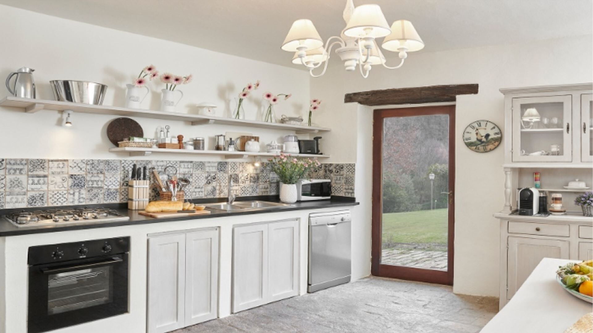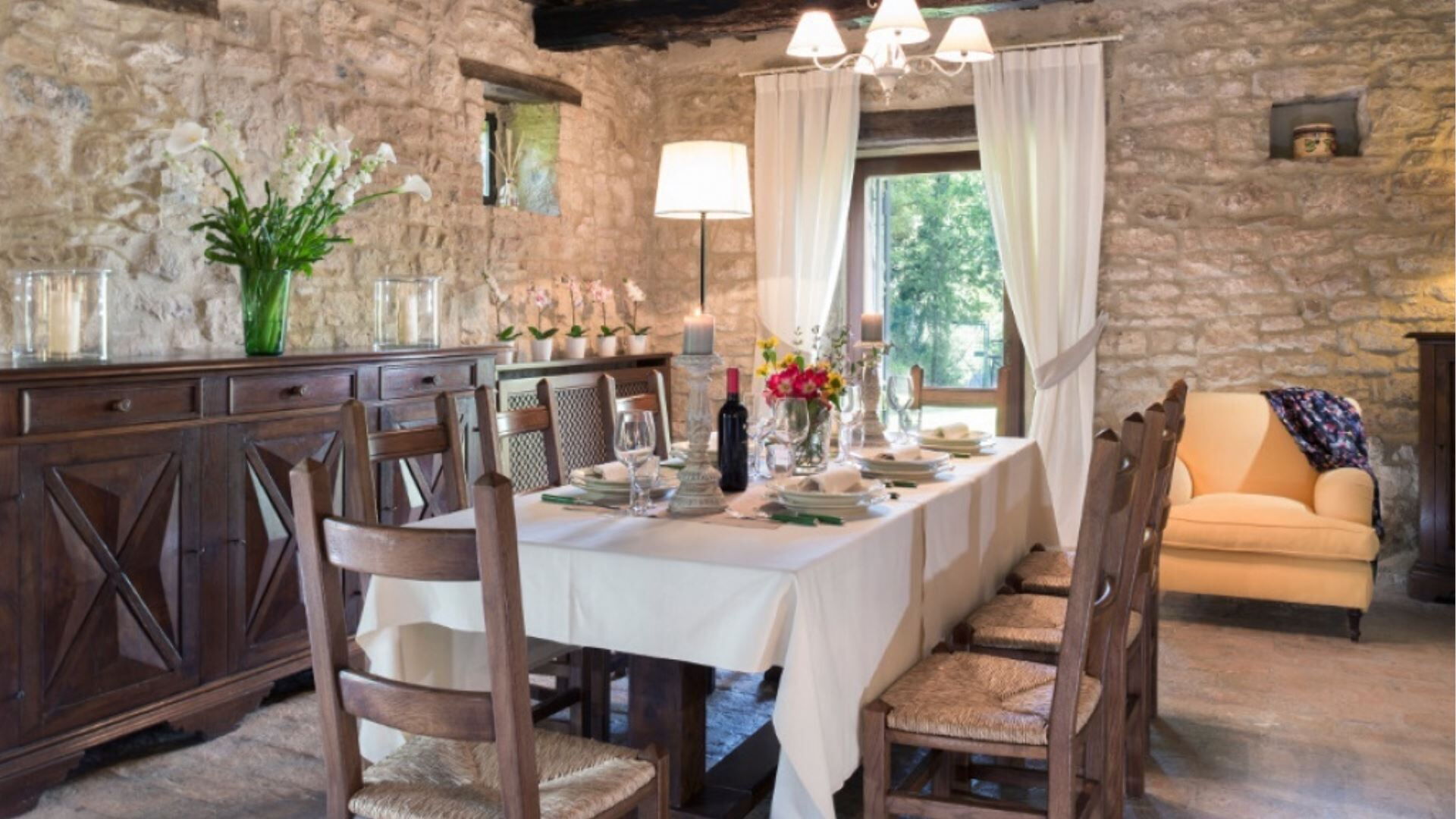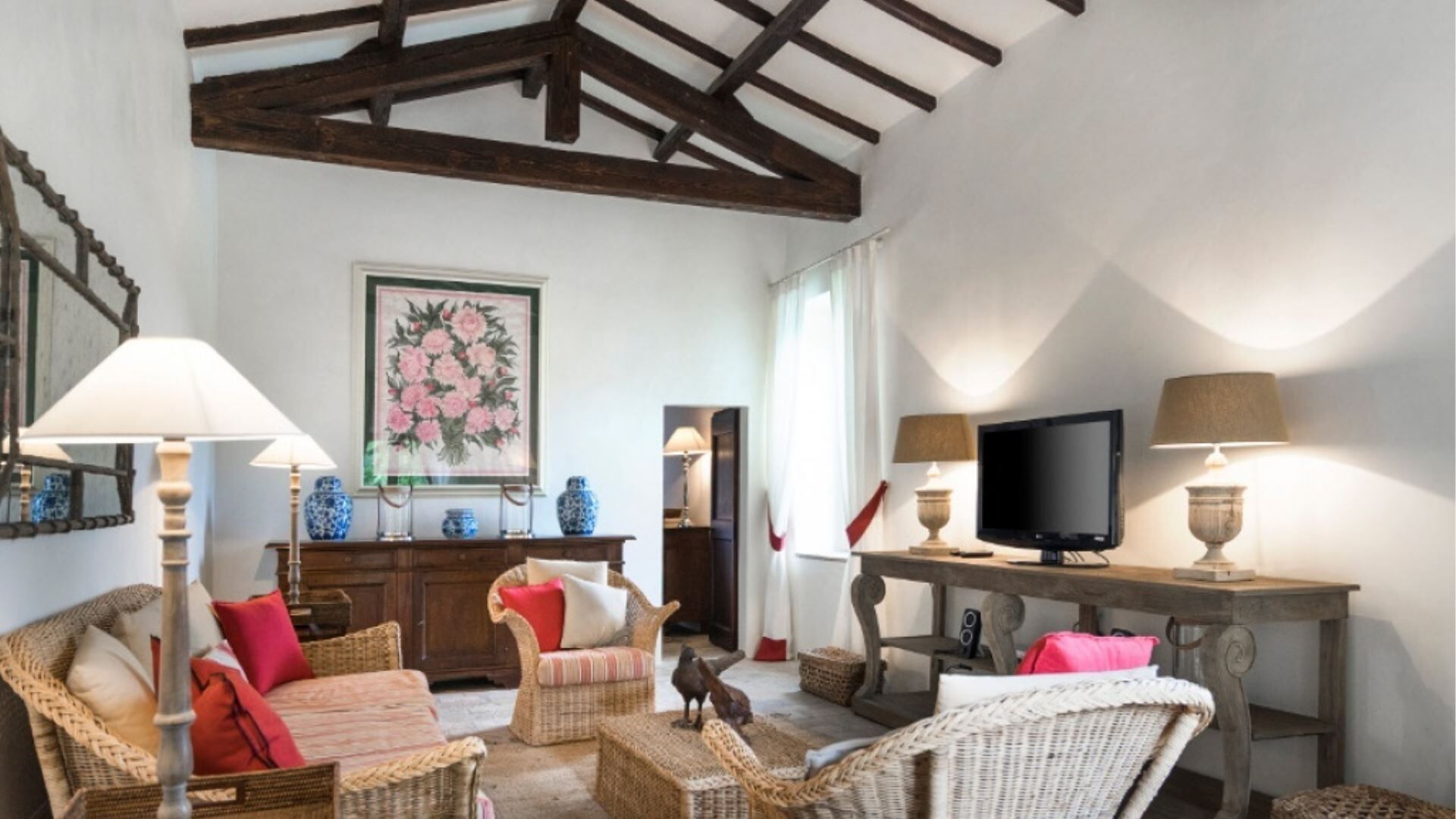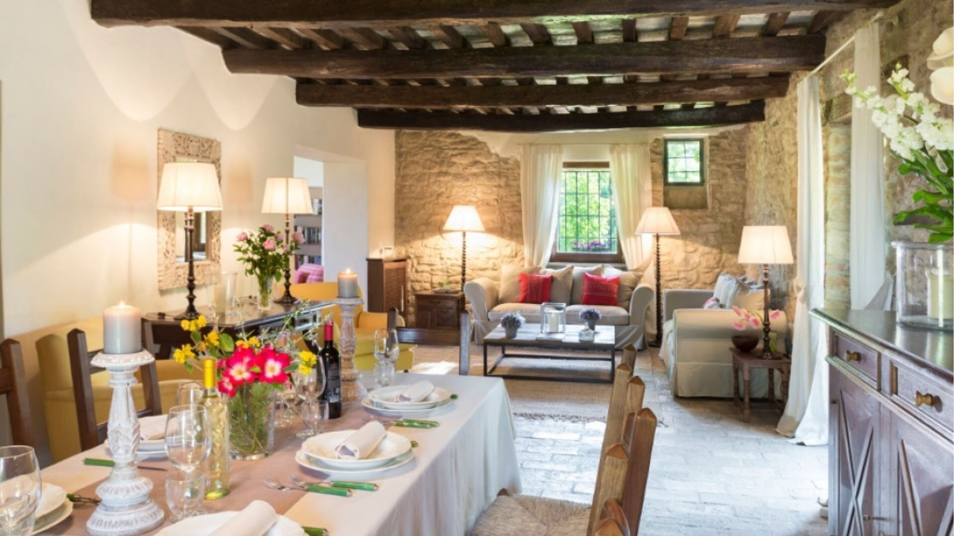 La villa ospita comodamente fino a 8 persone nei suoi spazi interni accuratamente progettati, con 4 camere da letto e 4 bagni. La sistemazione per la notte comprende 3 camere matrimoniali, ciascuna dotata del proprio bagno en suite, garantendo privacy e comodità agli ospiti. Inoltre, è presente 1 camera doppia con letti singoli che beneficia anch'essa di un bagno en suite, offrendo opzioni di alloggio flessibili per famiglie o gruppi. La disposizione della villa preserva il carattere delle sue origini del quattordicesimo secolo incorporando al contempo il comfort moderno in tutti gli ambienti. Gli spazi abitativi includono un ampio soggiorno che si apre sulla terrazza anteriore, creando un flusso armonioso tra le aree di intrattenimento interne ed esterne. La cucina completamente attrezzata offre ampio spazio per la preparazione dei pasti e presenta elettrodomestici moderni integrati nell'ambiente storico. Una spaziosa lavanderia offre uno spazio di servizio pratico separato dalle aree abitative principali. Ogni bagno è progettato con sanitari contemporanei e include un asciugacapelli per la vostra comodità, combinando funzionalità con l'estetica elegante della villa.