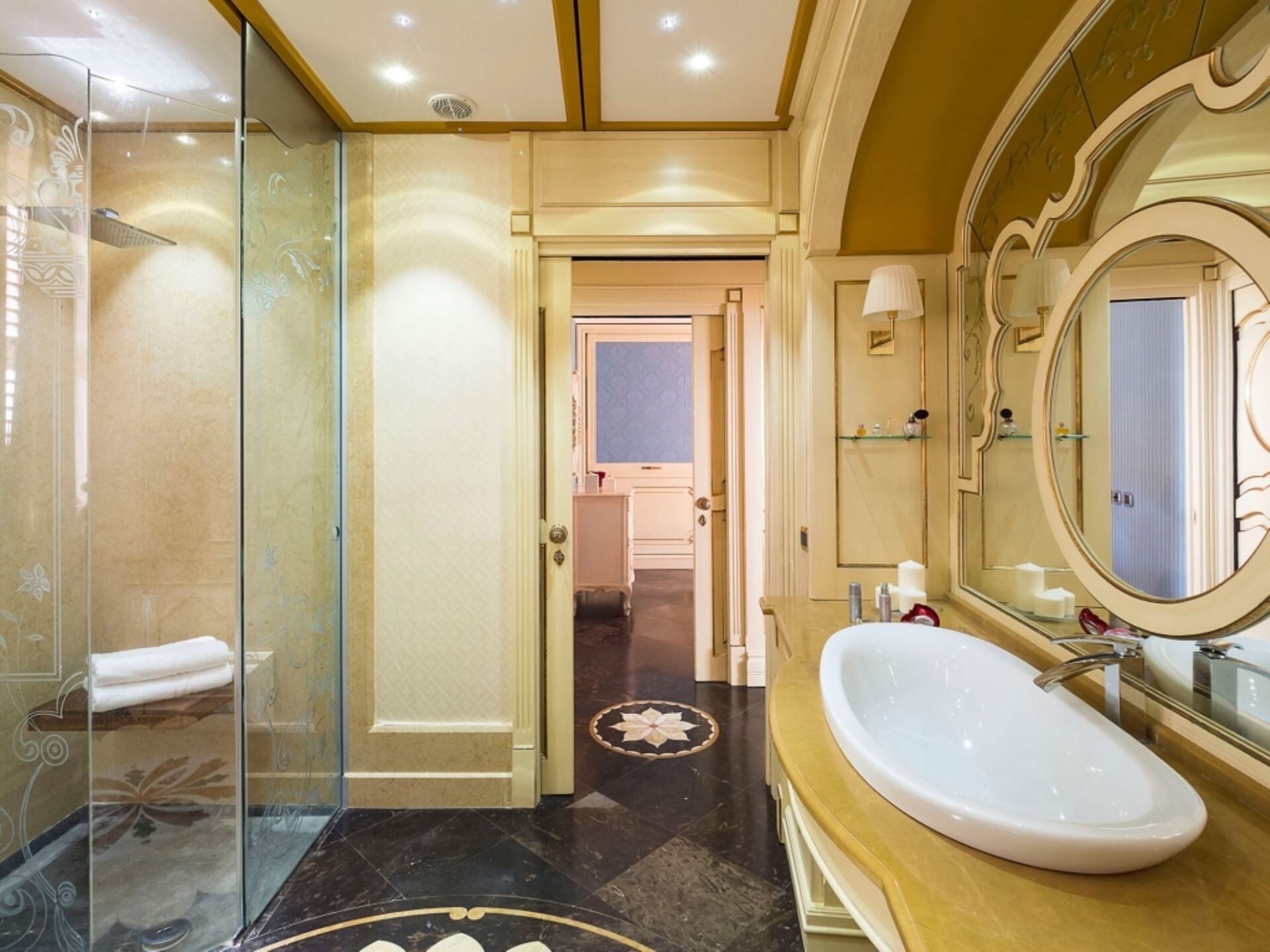 Questa imponente residenza su tre livelli può ospitare fino a 8 persone in 4 camere da letto e 4 bagni, con tutti i piani comodamente collegati da un ascensore per un facile accesso. Il primo piano si raggiunge tramite un'imponente scala esterna a doppia rampa e presenta un ingresso luminoso che conduce a un elegante soggiorno con camino e tavolo da gioco, 1 camera matrimoniale, 1 camera doppia, 1 bagno con doccia e accesso a una terrazza. Il secondo piano completa la zona notte con 1 camera matrimoniale, 1 camera doppia, 1 bagno con doccia e una piccola terrazza. Il piano terra ospita un'ampia zona giorno che combina un confortevole soggiorno, zona pranzo e cucina in muratura ben attrezzata, insieme a una lavanderia e l'esclusiva area wellness. Questa zona benessere presenta la suggestiva piscina coperta riscaldata, vasca idromassaggio, hammam e 2 bagni con doccia, creando un'atmosfera da spa lussuosa all'interno della villa.