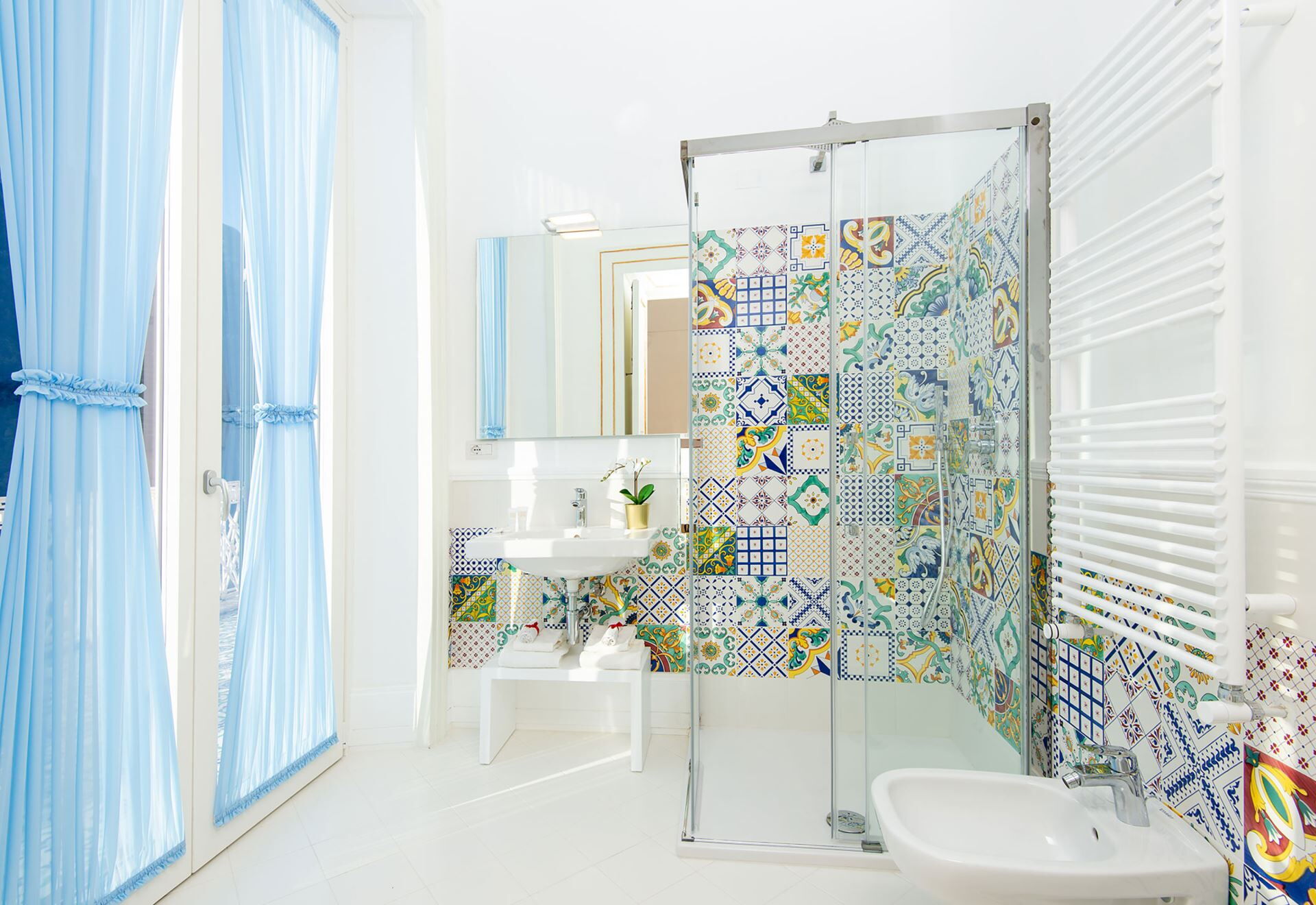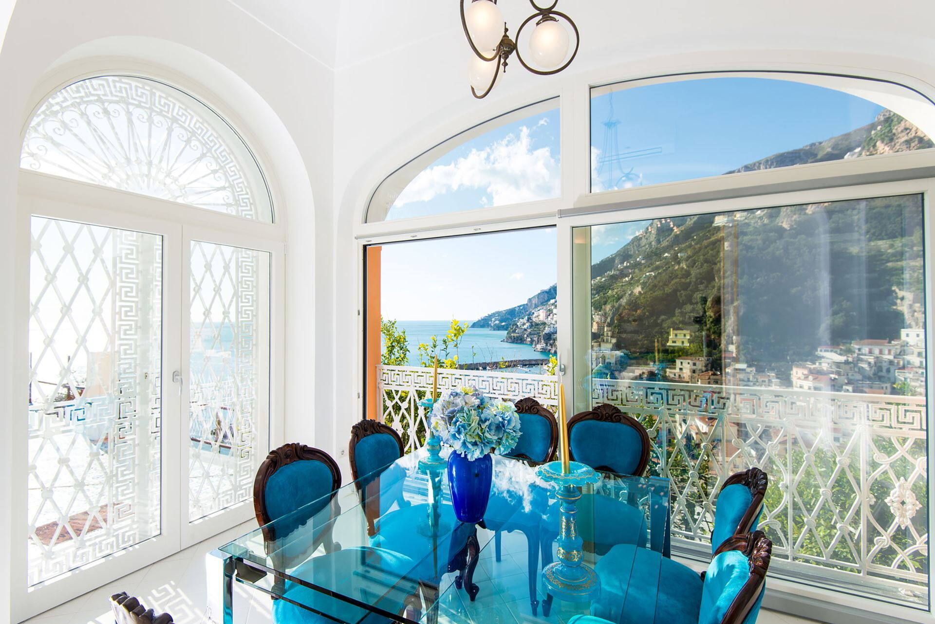 Villa Limoncello può ospitare un massimo di 8 persone nei suoi spazi interni progettati con cura. La proprietà dispone di 4 camere da letto e 7 bagni, distribuiti in tutta la villa per garantire privacy e comfort a tutti gli occupanti. Il soggiorno presenta uno spazio luminoso ed elegante con il caratteristico stile della Costiera Amalfitana, caratterizzato da alti soffitti a volta e arredato con un comodo divano e Smart TV. La sala da pranzo presenta un bellissimo tavolo da pranzo per otto persone, posizionato davanti a un'ampia finestra che incornicia viste mozzafiato sul mare e su Amalfi. La prima camera da letto con bagno en suite contiene un letto matrimoniale e una cassaforte, mentre la seconda camera da letto con bagno en suite presenta anch'essa un letto matrimoniale. La terza camera da letto con bagno en suite è composta da tre ambienti collegati, tra cui una zona giorno con un divano e due poltrone, una zona notte separata con letto matrimoniale e un bagno privato. La quarta camera da letto con bagno en suite contiene un letto matrimoniale. Ciascuno dei quattro bagni en suite è decorato con ceramiche lucidate fatte a mano e contiene lavabo, water, bidet, box doccia e asciugacapelli. Il quinto bagno contiene lavabo, water e box doccia, mentre il sesto bagno è dotato di lavabo e water. Tutte le camere da letto offrono accesso alla seconda terrazza con affascinanti viste sul mare, e ogni camera è accessibile dal corridoio centrale.