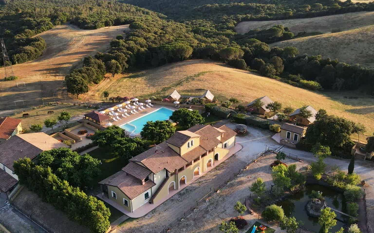 La residenza "Le Debbiare" offre una serena fuga con 4 case arroccate su una collina, circondate da un vasto terreno di 200 ettari e un parco recintato di 15.000 metri quadrati. Questa casa vacanze vanta uno stagno naturale, una piscina all'aperto stagionale (20 x 9 m, profondità 130 - 130 cm, disponibile dal 17 aprile al 27 settembre) e numerosi servizi, tra cui Internet WiFi, un cortile e strutture per il parcheggio.