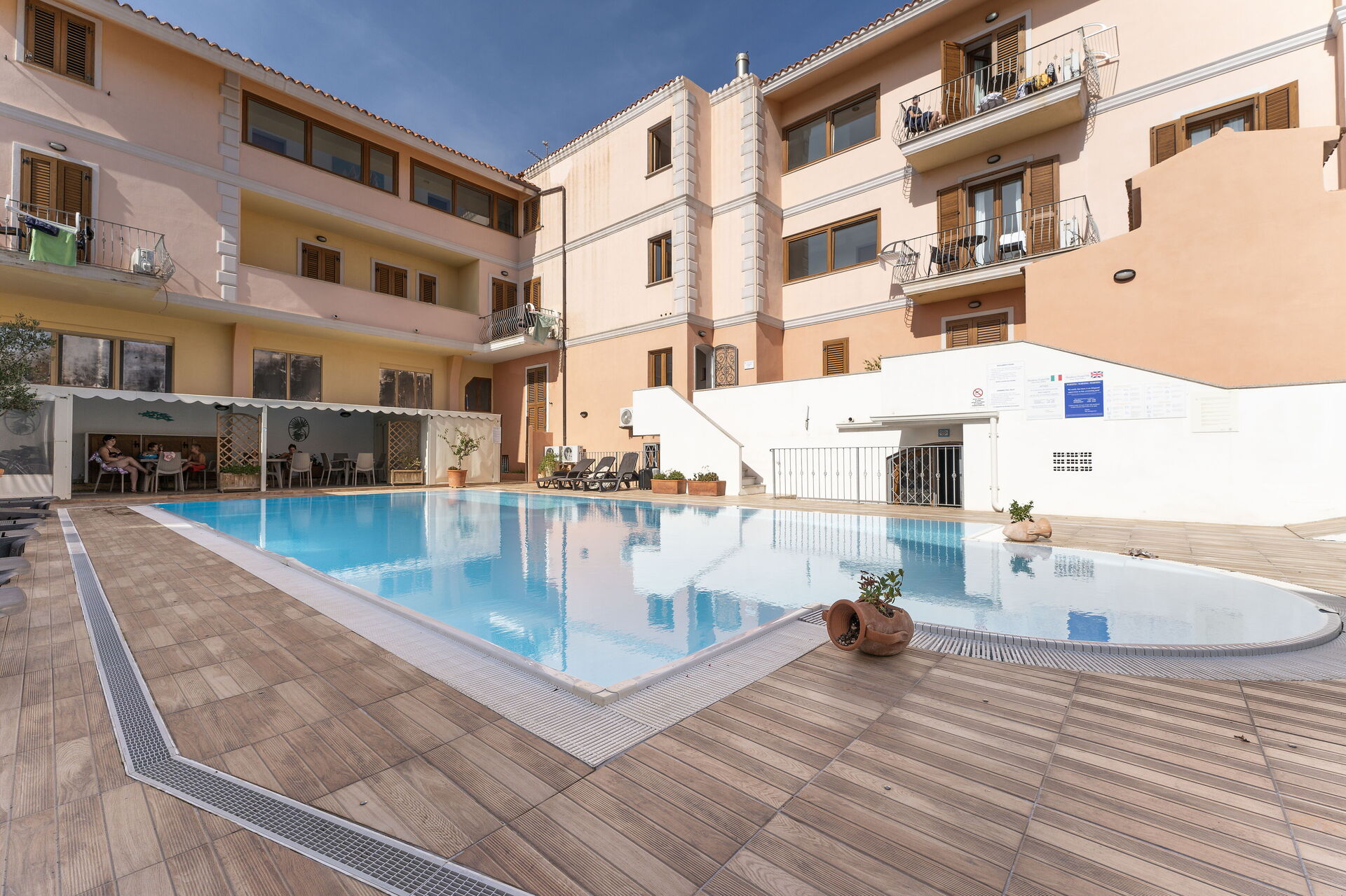 Una volta arrivato troverai una elegante casa vacanze pulita e in ottime condizioni, ideale per una piacevole vacanza in Sardegna. A prescindere da come trascorrerai le tue giornate - imbarcandoti in gite fuori porta, facendo shopping, visitando i più famosi musei della zona o semplicemente guidando nell'entroterra, quando arriverai a casa la sera avrai la possibilità di rilassarti con famiglia e amici a bordo piscina concludendo in bellezza un altro fantastico giorno di vacanza in Sardegna. Ogni unità dispone di una propria zona vivibile privata con una cucina fornita di utensili, stoviglie e posate, una camera e un bagno. Molte persone che viaggiano in compagnia di amici preferiscono una casa vacanze con più unità abitative dove poter condividere del tempo insieme nelle aree comuni, come la piscina, ma allo stesso tempo mantenere la propria privacy nelle singole unità abitative.