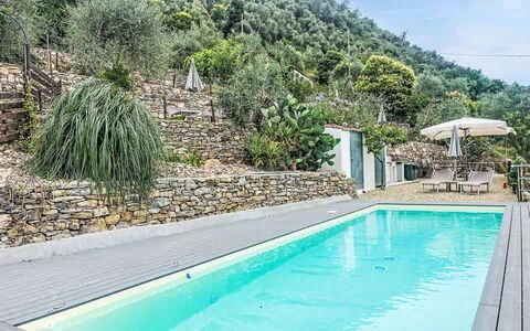 Agriturismo "Borgo Olimpo", piacevole, confortevole su 2 piani, ristrutturata nel 2024, circondata da alberi e vigne. 3 appartamenti nella proprietà. Nel centro di Molini di Prelá, a 3 km dal centro di Dolcedo, a 12 km dal centro di Imperia, posizione tranquilla, soleggiata su una collina, a 12 km dal mare. In comune: terreno 3'000 m2, grande giardino terrazzato (recintato) con prato, piscina protetta, recintata (10 x 3 m, profondità 140 cm, disponibilità stagionale: 01.Mag. - 10.Ott.). Doccia/wc nell'area piscina, doccia esterna, pool-house con frigorifero, doccia e piano cottura, campo da bocce, patio, gazebo, terrazza, mobili da giardino, barbecue, pulizia piscina da parte del proprietario/giardiniere. Per uso privato: giardino terrazzato, giardino naturale, frutteto. Nella casa: accesso ad internet, wifi, area wellness, deposito biciclette. Cuoco su richiesta (extra). Servizio consegna pane e servizio consegna bevande. Parcheggio pubblico 30 m. Negozio alimentare 200 m, supermercato 8 km, shopping center 12 km, ristorante, bar 20 m, panetteria 200 m, cafe 20 m, noleggio biciclette 4 km, fermata bus "Molini di Prela" 20 m, stazione ferroviaria "Imperia Oneglia" 12 km, spiaggia sabbiosa "Borgo Marina Imperia" 12 km spiaggia ciottolosa "Borgo Prino" 10 km, spiaggia ghiaiosa "Borgo Foce Imperia" 10 km, lago balneabile "Laghetti di Prelá" 500 m. Sentieri per passeggiate vicino alla casa 10 m, pista ciclabile 12 km, parco giochi 30 m. Attrazioni nelle vicinanze: Valloria (160 bemalte Türen) 4 km, Porto Maurizio Altstadt Parasio 12 km, Bussana Vecchia Erdbebendorf 25 km, Triora Hexendorf 45 km. Sentieri escursionistici: Monte Faudo (1149 m) Mountainbike Trails 15 km, Laghetti di Lecchiore (Wanderweg) 10 km. Prego notare: auto consigliata.