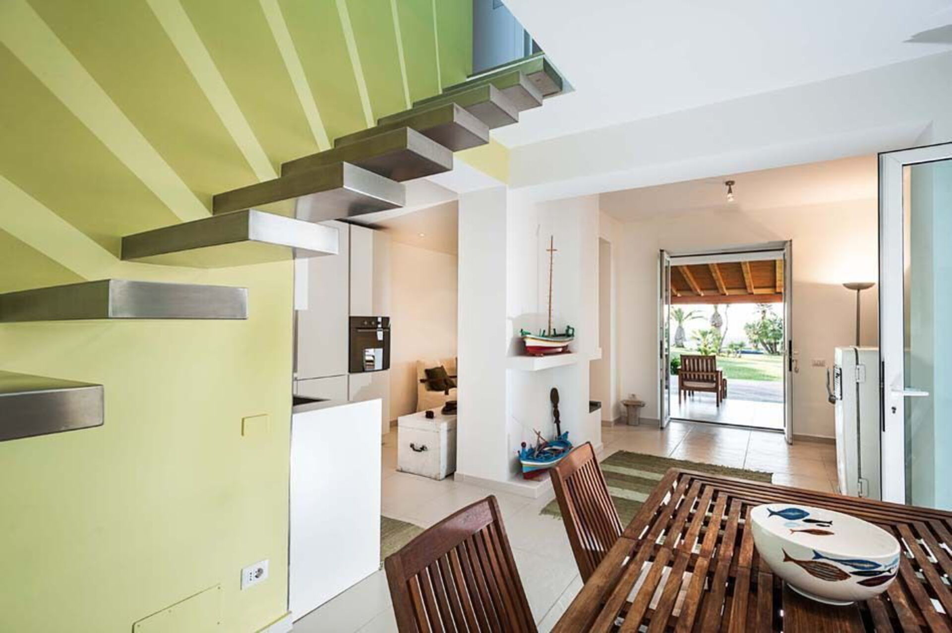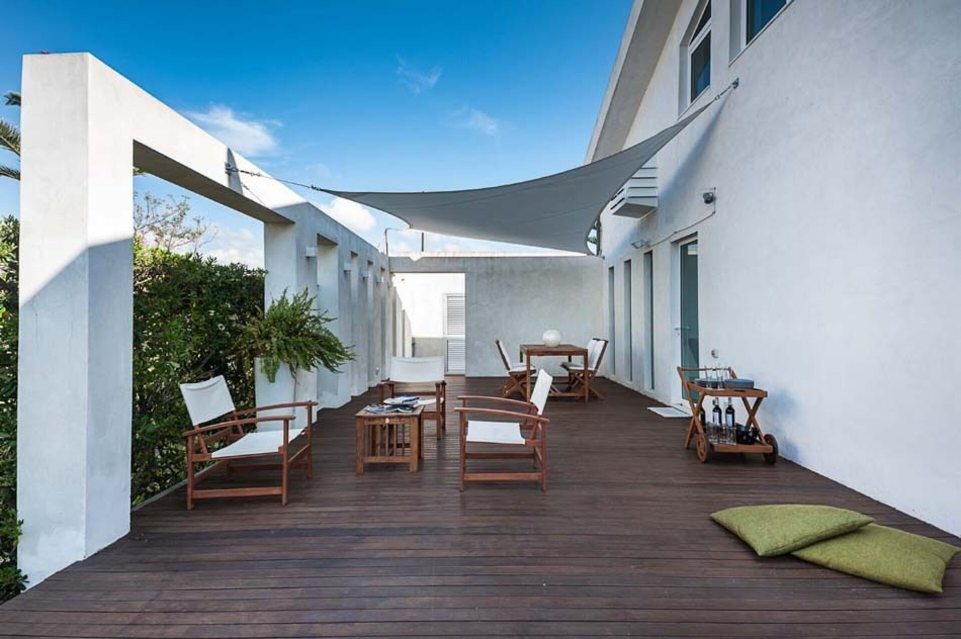 Distribuiti su due livelli, i confortevoli ambienti interni della dimora sono arredati con gusto contemporaneo e cura dei particolari e dispongono di internet wi-fi, Ipod dock station, TV satellitare, lavatrice e lavastoviglie.