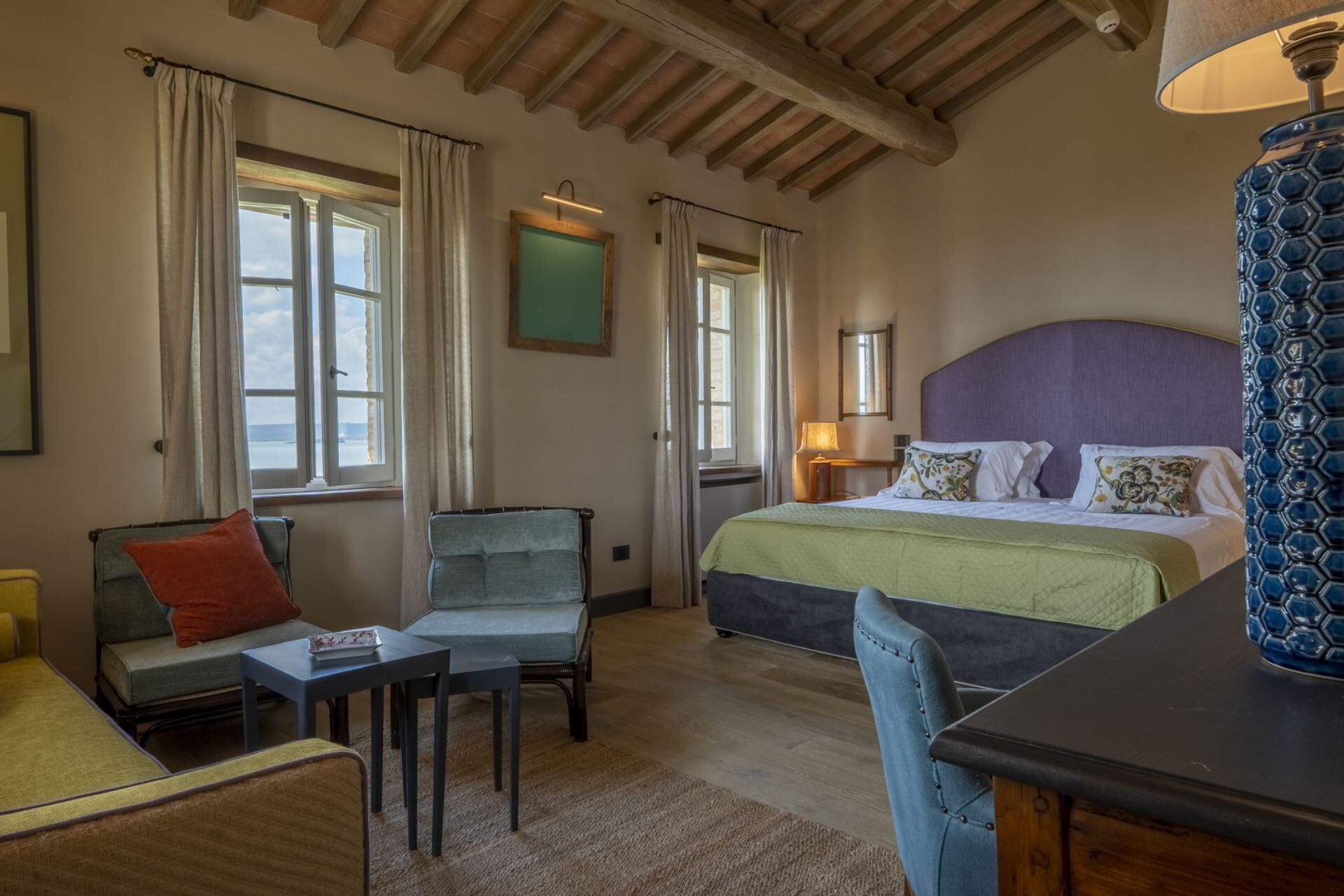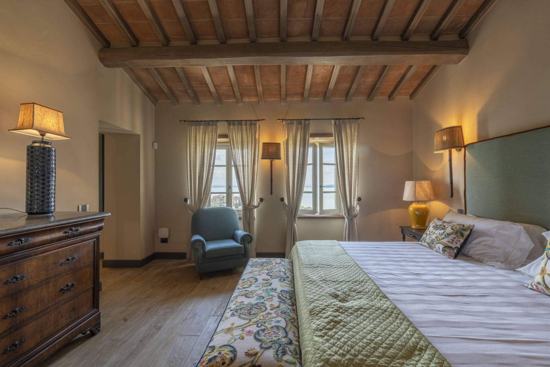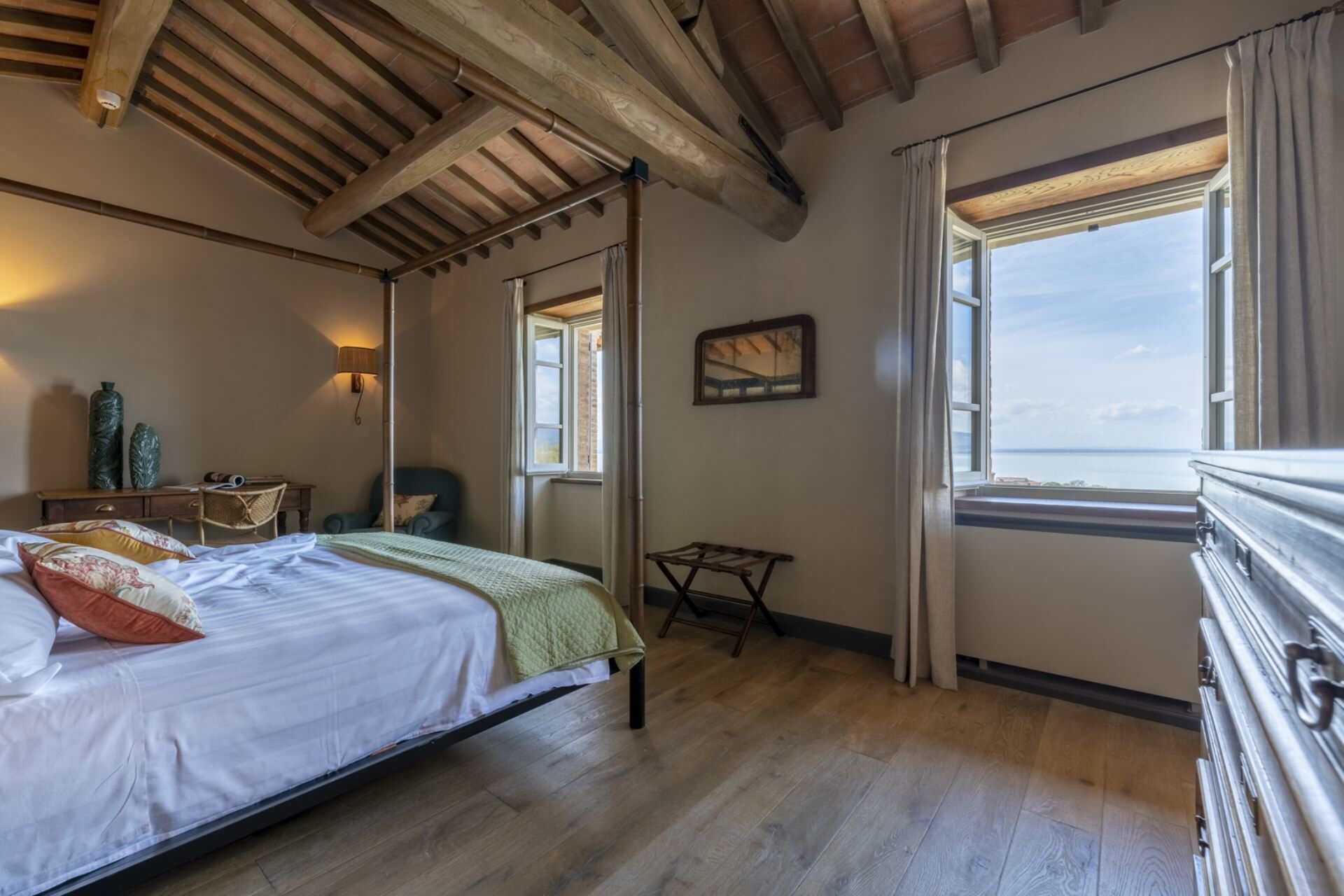 Quest’area in prossimità del Lago Trasimeno offre molteplici esperienze da vivere per scoprire il territorio da più punti di vista: gastronomico, storico, culturale, artistico e naturalistico. Colline, pianure e litorale offrono prospettive diverse sul Lago Trasimeno, rendendolo mutevole ad ogni sguardo tanto da incantare artisti e letterati, come il Perugino, Byron o Goethe. E’ un territorio che si presta ad escursioni in mezzo al verde in cui è facile imbattersi nella fauna locale. Il paesaggio lacustre conta innumerevoli sfumature di verde da godere appieno lungo i percorsi del parco, a piedi, in bici o a cavallo. I borghi del Lago Trasimeno sono numerosi e tutti con peculiarità da scoprire. Castiglione del Lago, sul confine toscano, Sant'Arcangelo, con l'antica abbazia, Tuoro sul Trasimeno, paese medievale teatro di battaglia tra Cartaginesi e Romani, e San Feliciano, paese di pescatori, sono solo alcuni dei borghi aggrappati alle sponde del lago Trasimeno, ognuno con un passato invitante e un presente da scoprire. Un po' più all'interno, si trovano altri centri storici degni di visita, come il borgo murato di Panicale, nella Valdichiana,Magione con il Castello dei Cavalieri di Malta (XII sec). A Città della Pieve, silenzioso e caratteristico borgo medioevale, è presente il vicolo più stretto d'Italia. Luogo natale del pittore il Perugino, questo Comune ospita diverse opere dell’artista, dalla Madonna col Bambino, conservata nella cattedrale dei Santi Gervasio e Protasio, allo stupendo affresco L’Adorazione dei Magi, presso Palazzo della Corgna, magnifica dimora signorile. Città della Pieve è un vero gioiello, ricco di bei negozi e luogo ideale per una pausa gastronomica e un buon bicchiere di vino. Ti ritroverai immerso in una delle zone più rinomate dell'Umbria, ideale per degustare ottimi vini o sperimentare prestigiose cantine e ristoranti di qualità. Che tu stia cercando ristoranti tradizionali o che cerchi esperienze di livello in ristoranti stellati, qui puoi dare sfogo a tutti i tuoi desideri gastronomici. Se desideri maggiori informazioni su questa località e per tutte le esperienze da fare in prossimità della struttura scrivi a: booking@greatstays.it