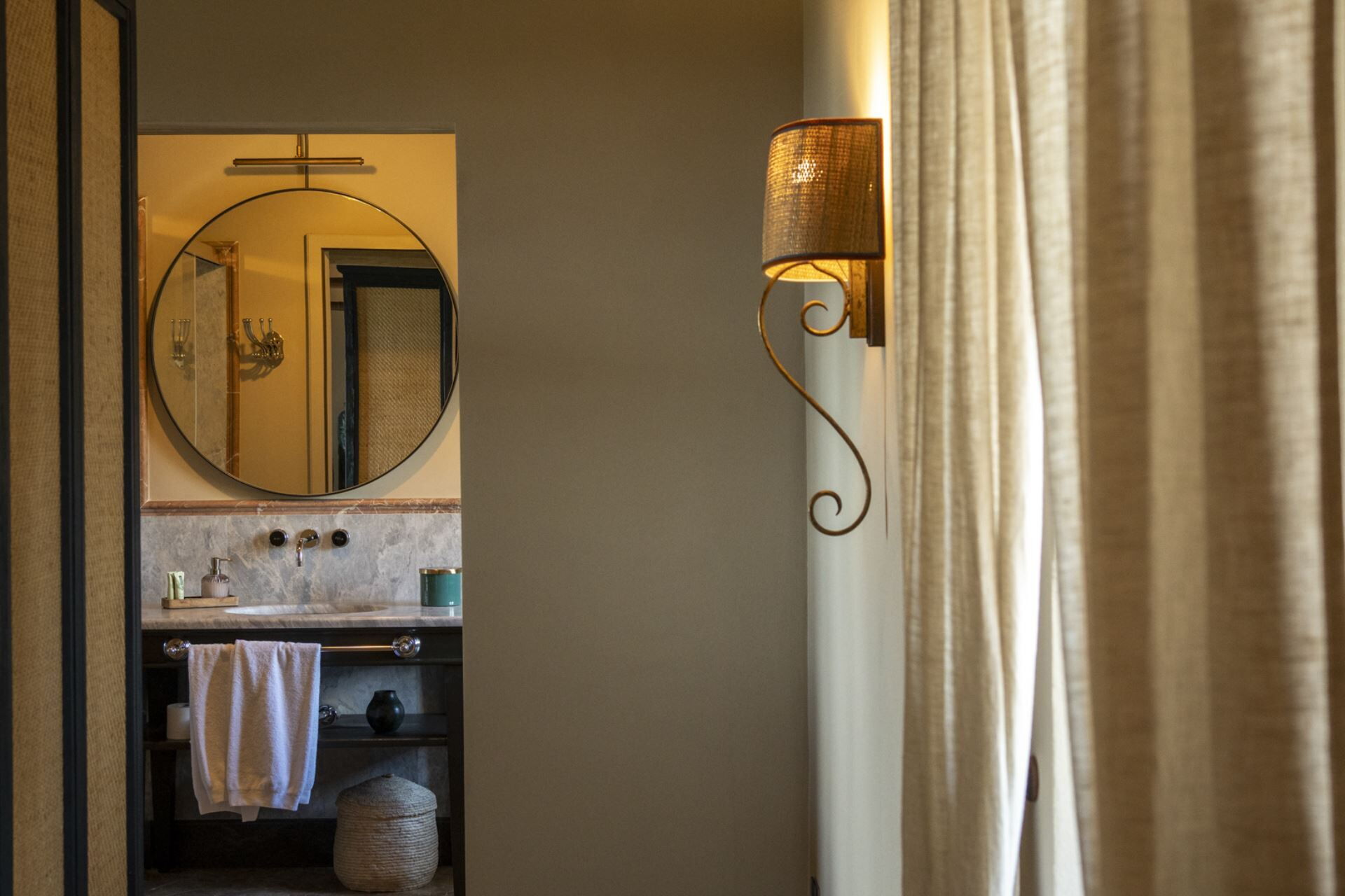 Camera da letto con bagno: letto king size (larghezza: 180m, lunghezza: 200m), internet WIFI, aria condizionata, zanzariere, divano, cassaforte, lavandino, wc, bidet, doccia, asciugacapelli, uscita sul giardino.