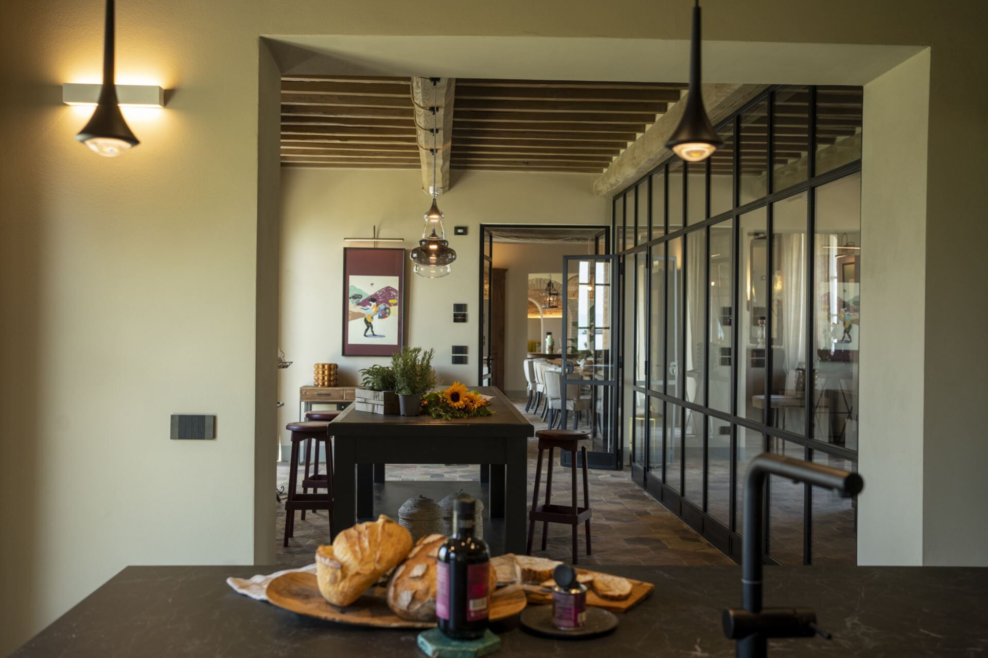 Comprende: cucina, soggiorno, sala da pranzo, camera da letto con bagno, 2 toilette.