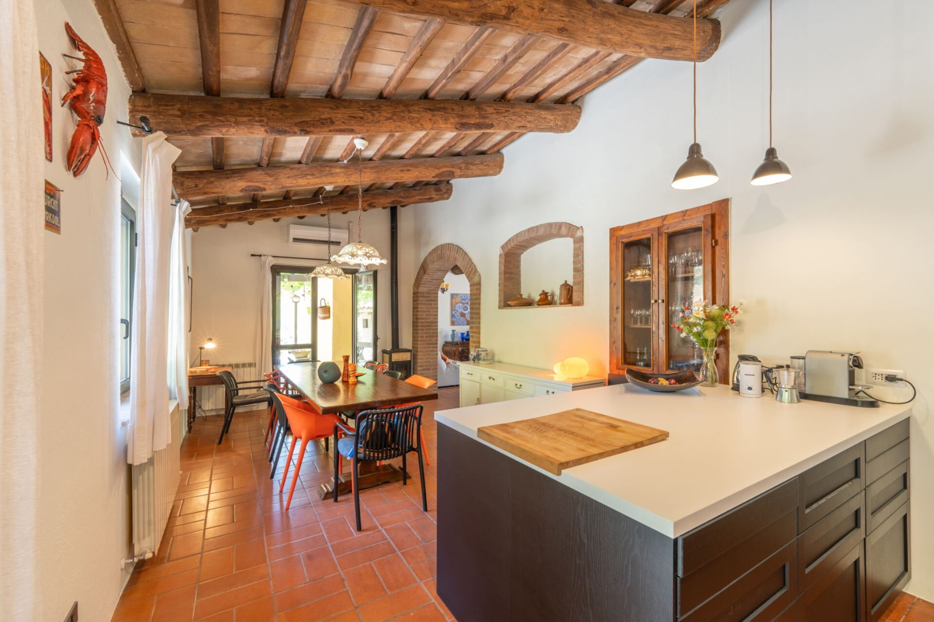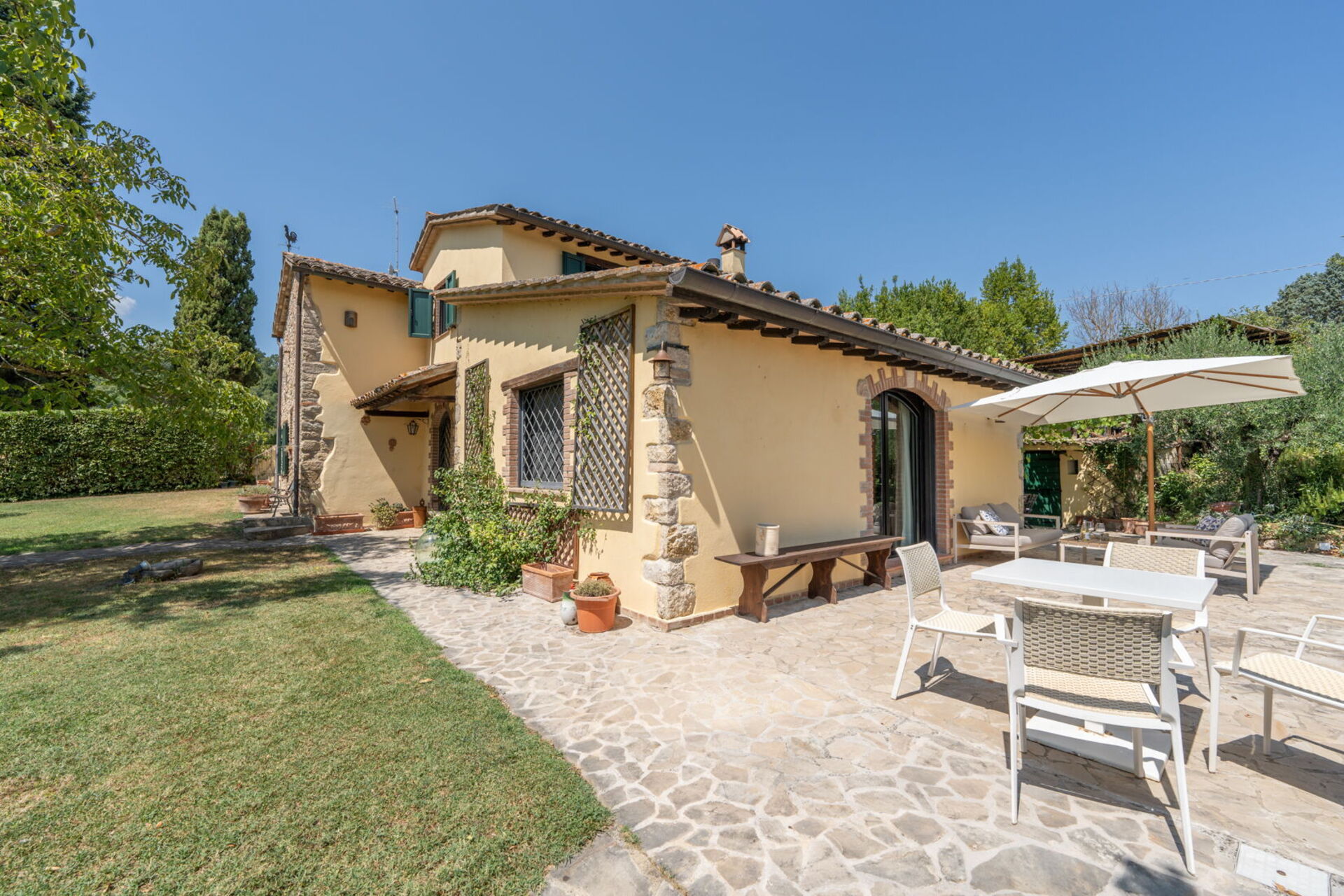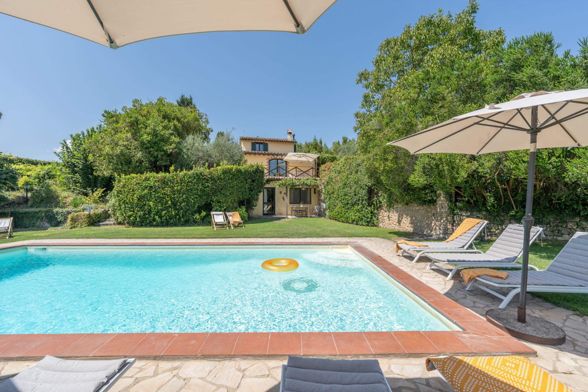 All'interno, l'architettura tradizionale italiana incontra il comfort moderno in uno spazioso salotto con camino, una cucina completamente attrezzata, due sale da pranzo, quattro incantevoli camere da letto e 3 bagni completamente ristrutturati.