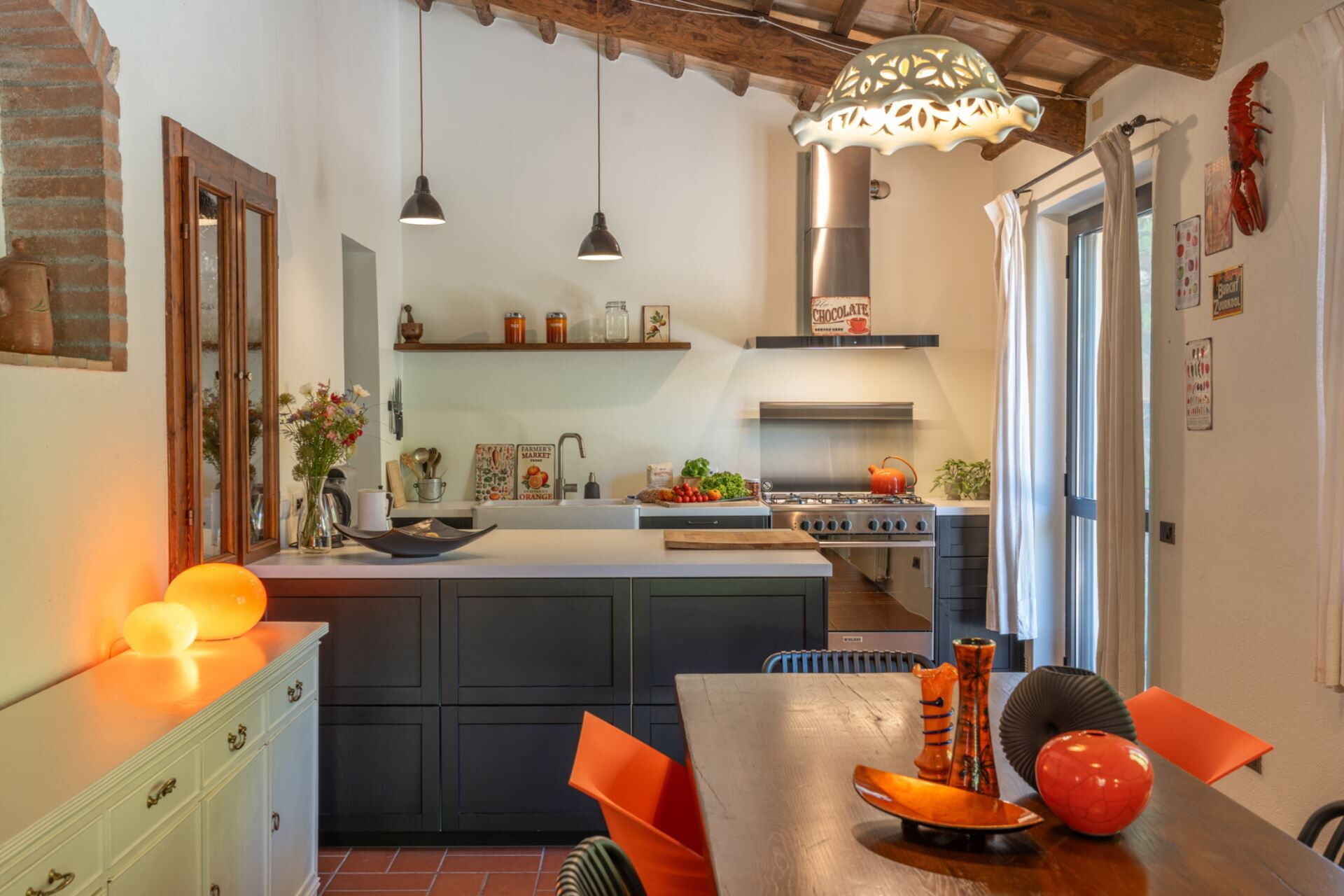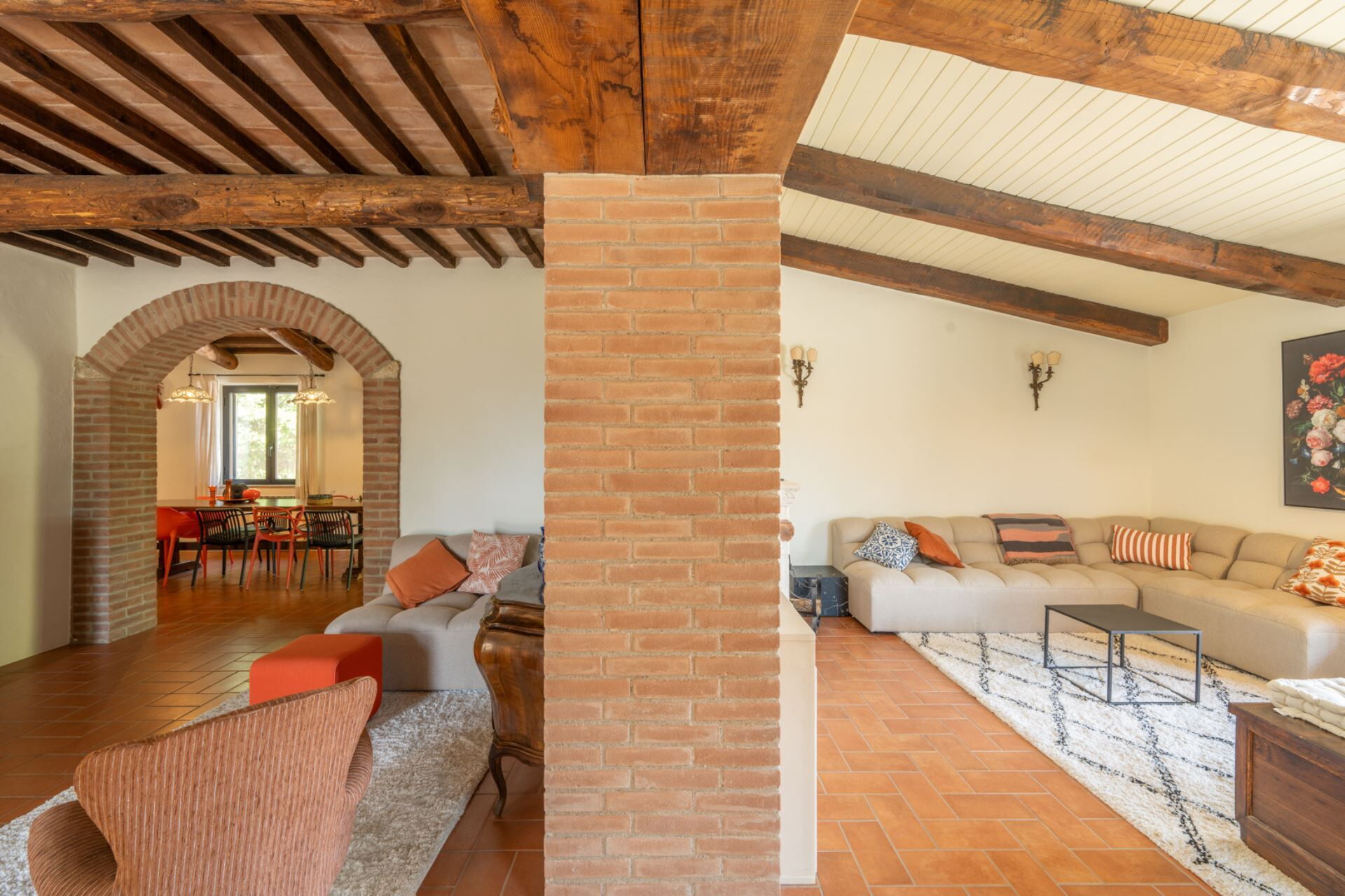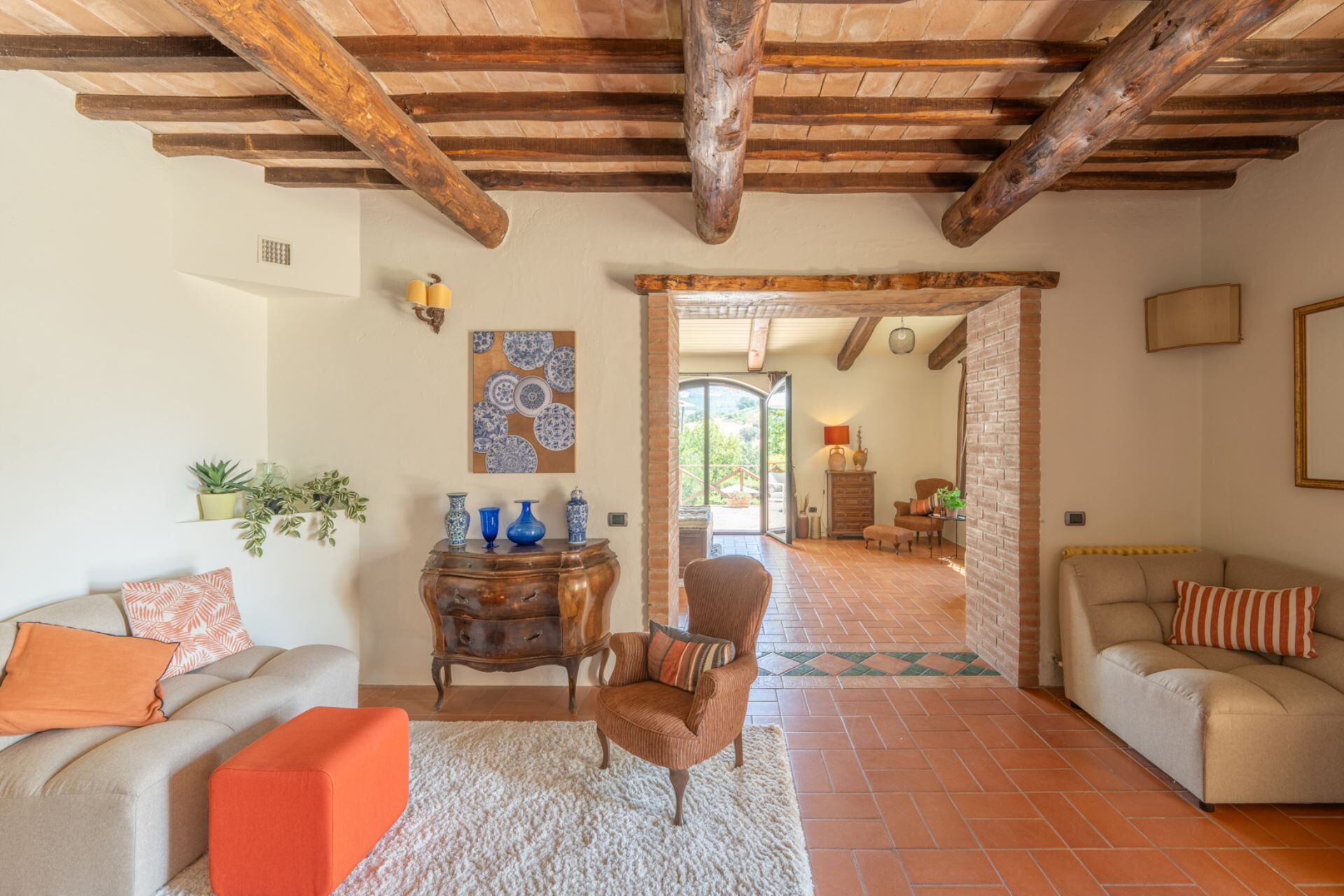 All'interno, l'architettura tradizionale italiana incontra il comfort moderno in uno spazioso salotto con camino, una cucina completamente attrezzata, due sale da pranzo, quattro incantevoli camere da letto e 3 bagni completamente ristrutturati.