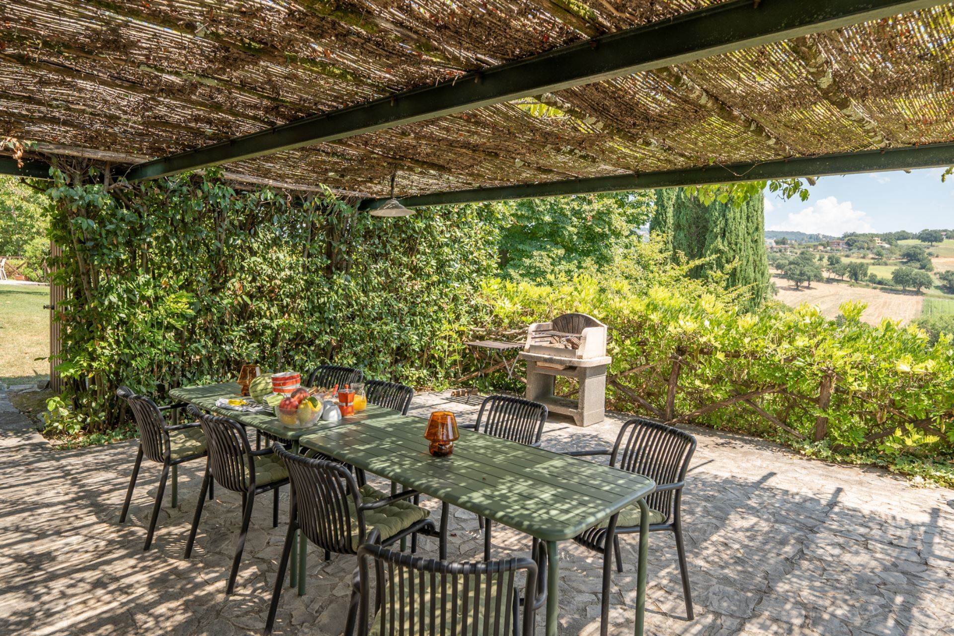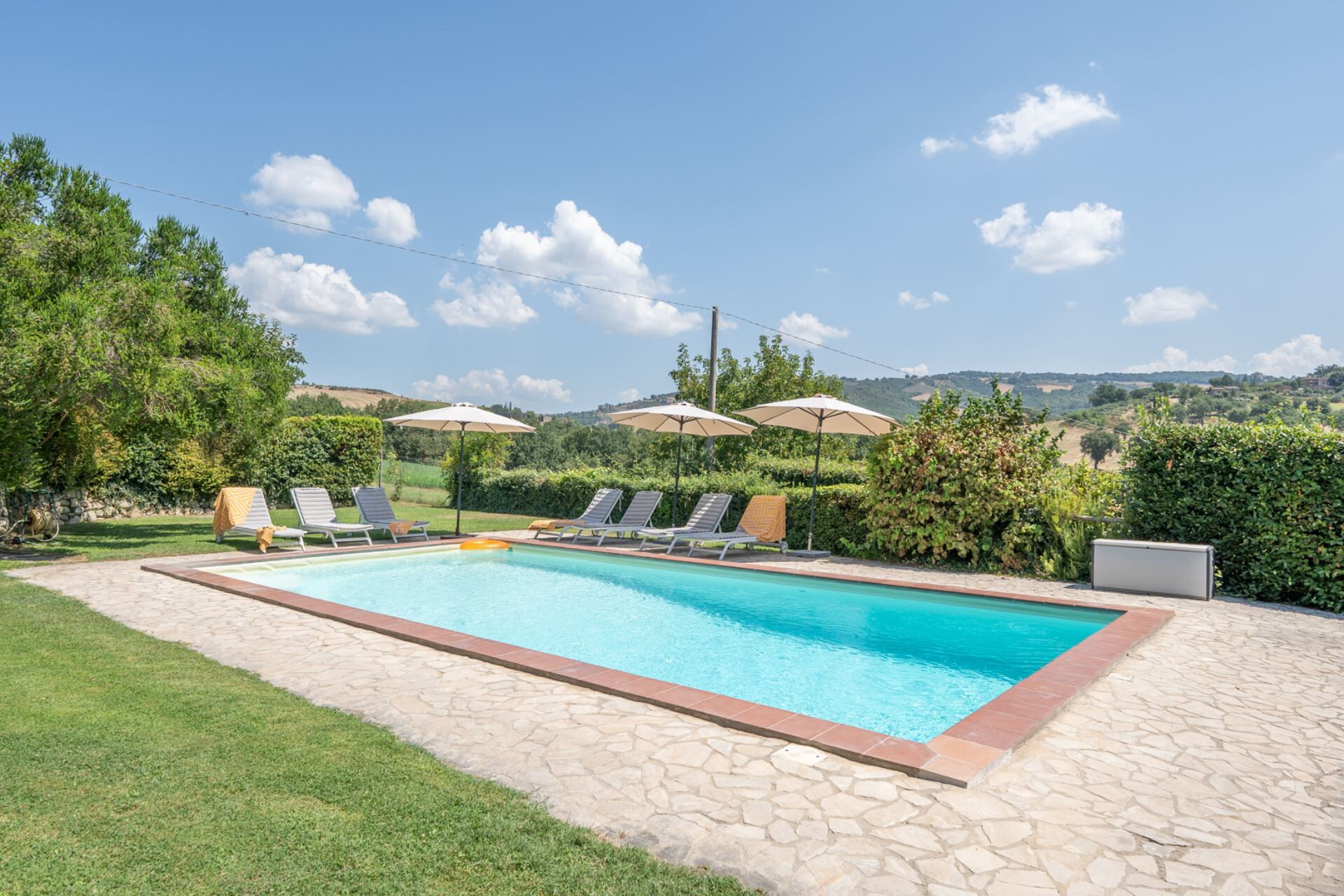 Una volta arrivato sarai ricevuto dal proprietario o dal gestore della tua incantevole casa vacanze, una proprietà pulita e tenuta in ottime condizioni, ideale per una rilassante vacanza in Umbria. Per il tuo divertimento troverai una piscina privata dove poterti rilassare mentre ti godi una bibita rinfrescante dopo una giornata frenetica ricca di shopping. Se provi piacere nel cucinare per la tua famiglia e i tuoi amici, la proprietà è provvista di una cucina ben accessoriata con macchinetta per il caffè, microonde, fornelli e frigorifero, così come un numero sufficiente di stoviglie e posate per un massimo di 11 persone. Se preferisci mangiare all'aperto, c'è a tua disposizione una veranda completamente accessoriata dove potrai goderti il bel tempo durante i tuoi pasti.