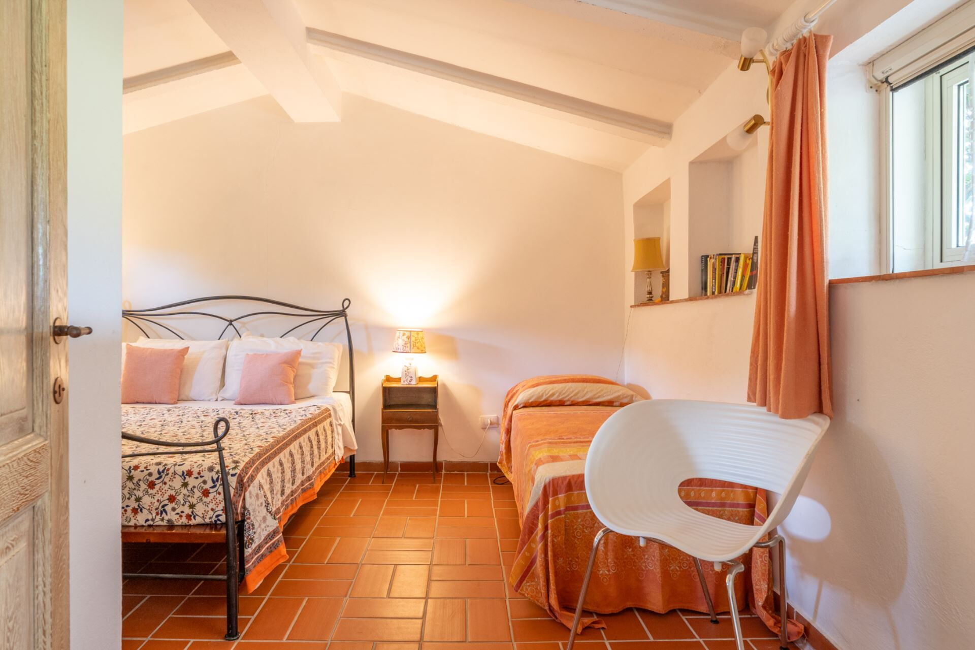 Andando verso la zona notte troviamo una camera e un bagno al piano terra, tre camere e due bagni al piano primo.
