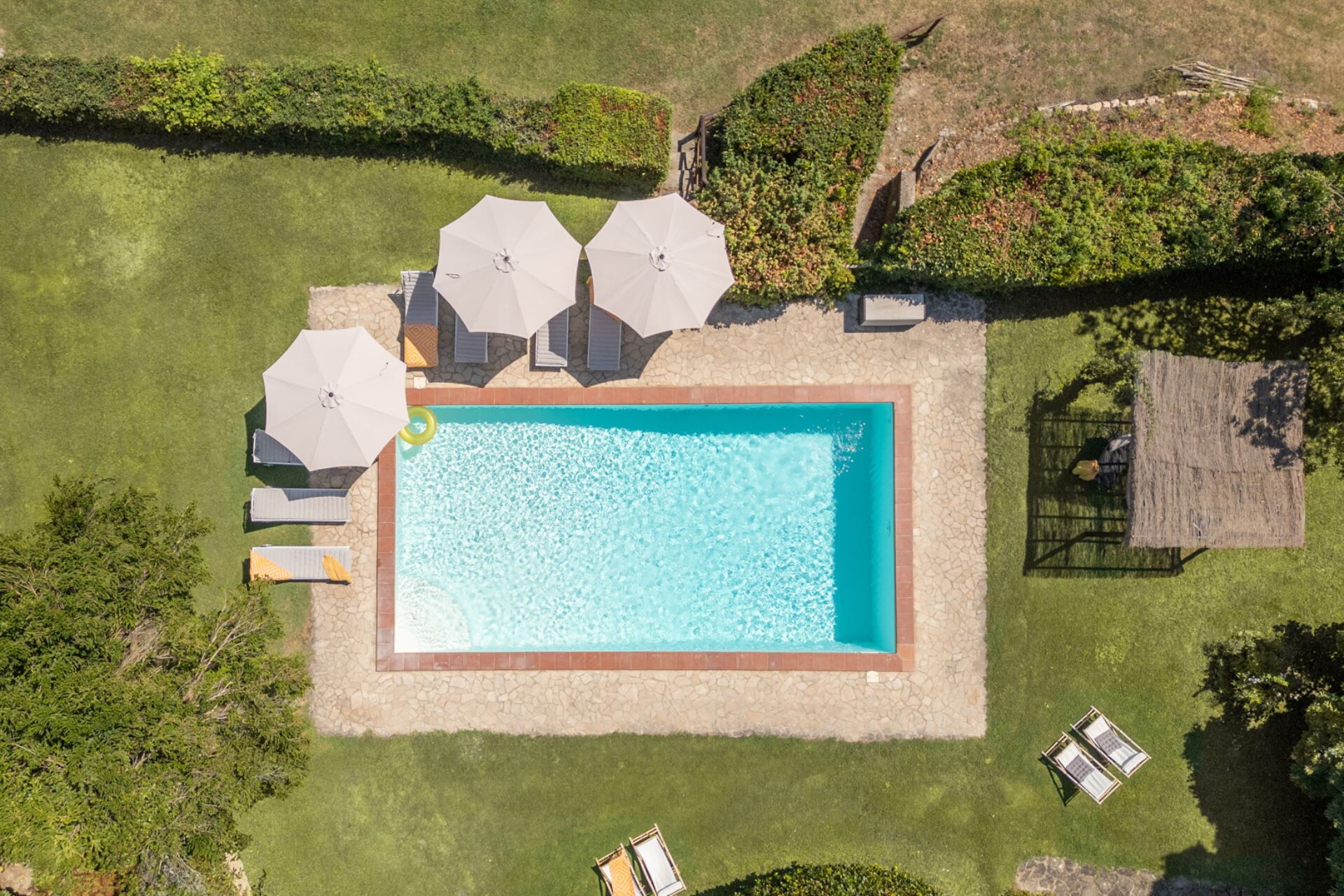 Oltre alla casa principale, questa proprietà è composta da un’incantevole dependance con cucina, bagno e camera da letto che può ospitare fino a tre persone in un letto matrimoniale a un singolo. Inoltre c'è una pool house (con letto matrimoniale) sotto la casa principale con bar completamente attrezzato, cucina e bagno.