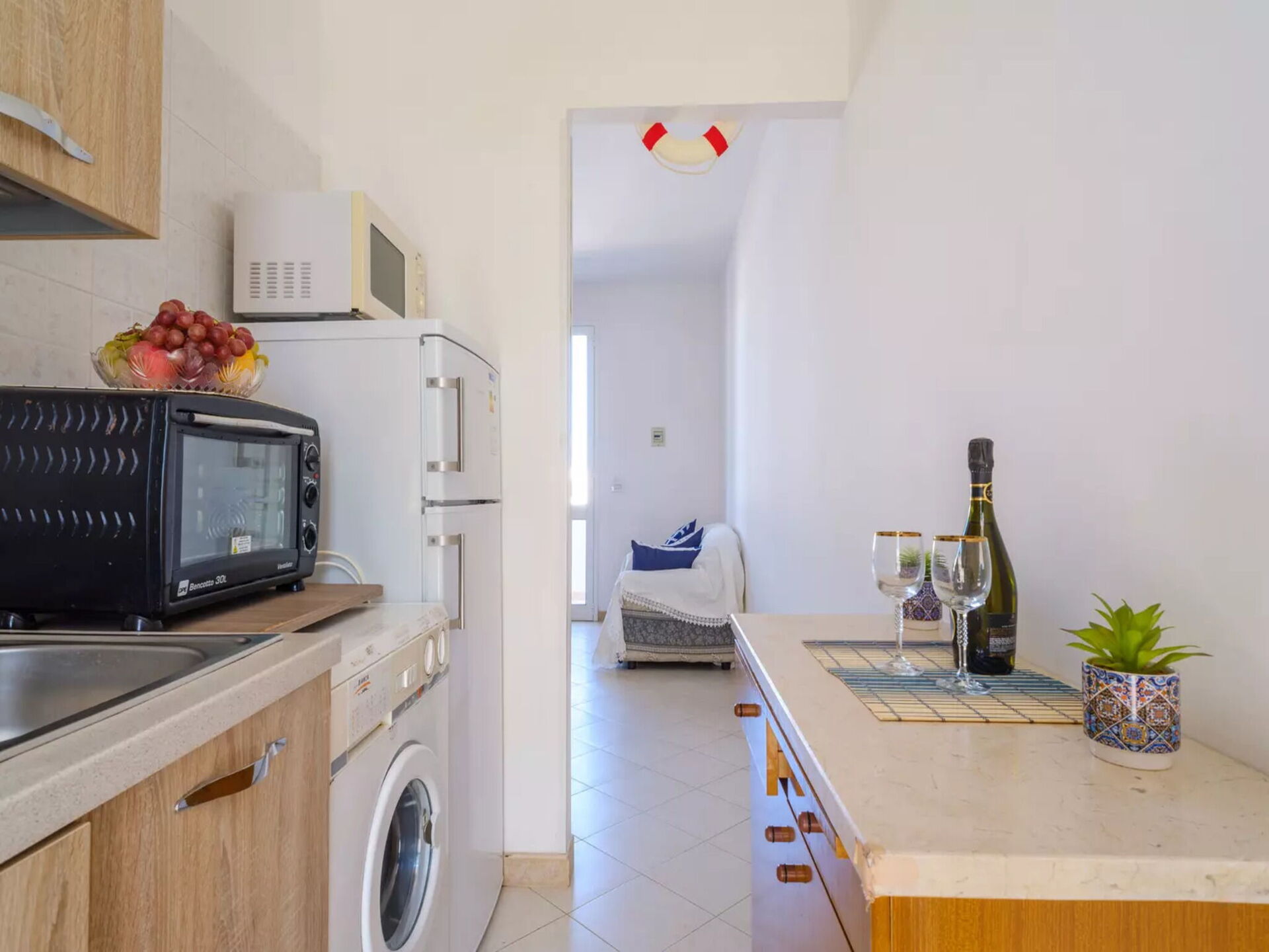Una volta arrivato troverai una bellissima casa vacanze pulita e in ottime condizioni, ideale per una rilassante vacanza in Puglia. Uno dei fattori che rende il soggiorno in una casa vacanze più piacevole di quello in più camere d'albergo, è la possibilità di rilassarsi tutti insieme dopo una lunga giornata di visite turistiche; un'occasione per godersi un pasto insieme a famiglia e amici con del buon vino locale per concludere al meglio la giornata. Se provi piacere nel cucinare per la tua famiglia e i tuoi amici, la proprietà è provvista di una cucina ben accessoriata con macchinetta per il caffè, microonde, fornelli e frigorifero, così come un numero sufficiente di stoviglie e posate per un massimo di quattro persone.