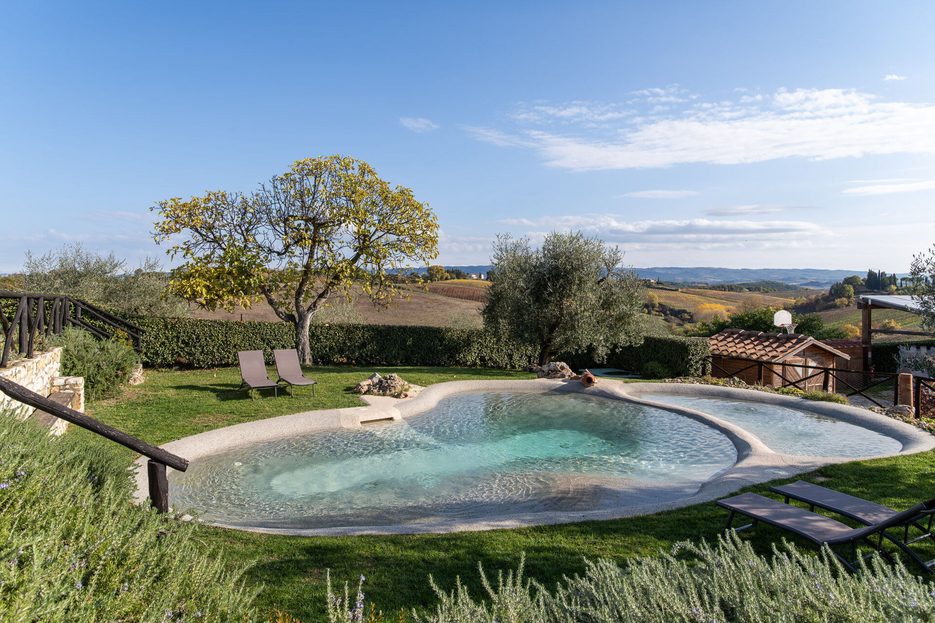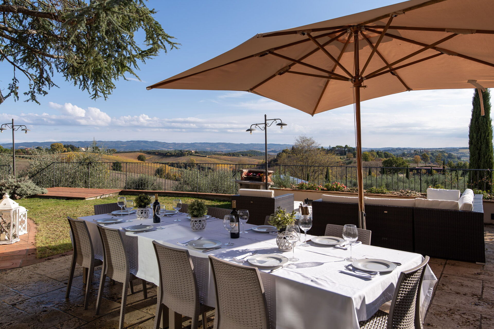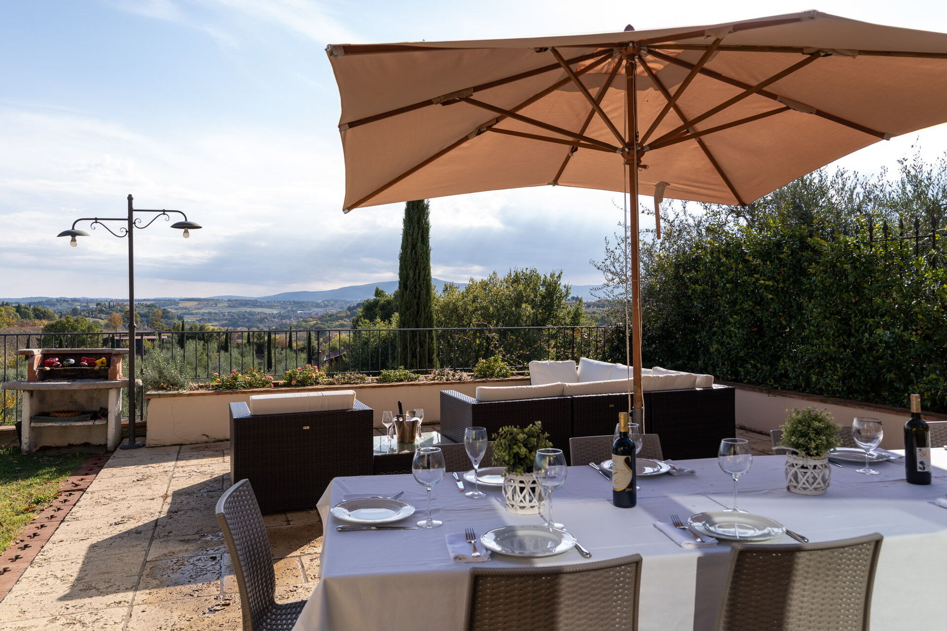 La proprietà è posizionata a soli 4 km di distanza da Colle Di Val D’elsa (Italia), nell'area turistica "San Gimignano e Dintorni" e solo a 10 km di distanza da San Gimignano. La casa vacanze Villa L'elsa Beautiful Country Home With View è una elegante proprietà (350 mq) che offre aria condizionata, vasca idromassaggio e piscina privata. La proprietà può accogliere comodamente fino a 14 ospiti in sette camere da letto con sei bagni.