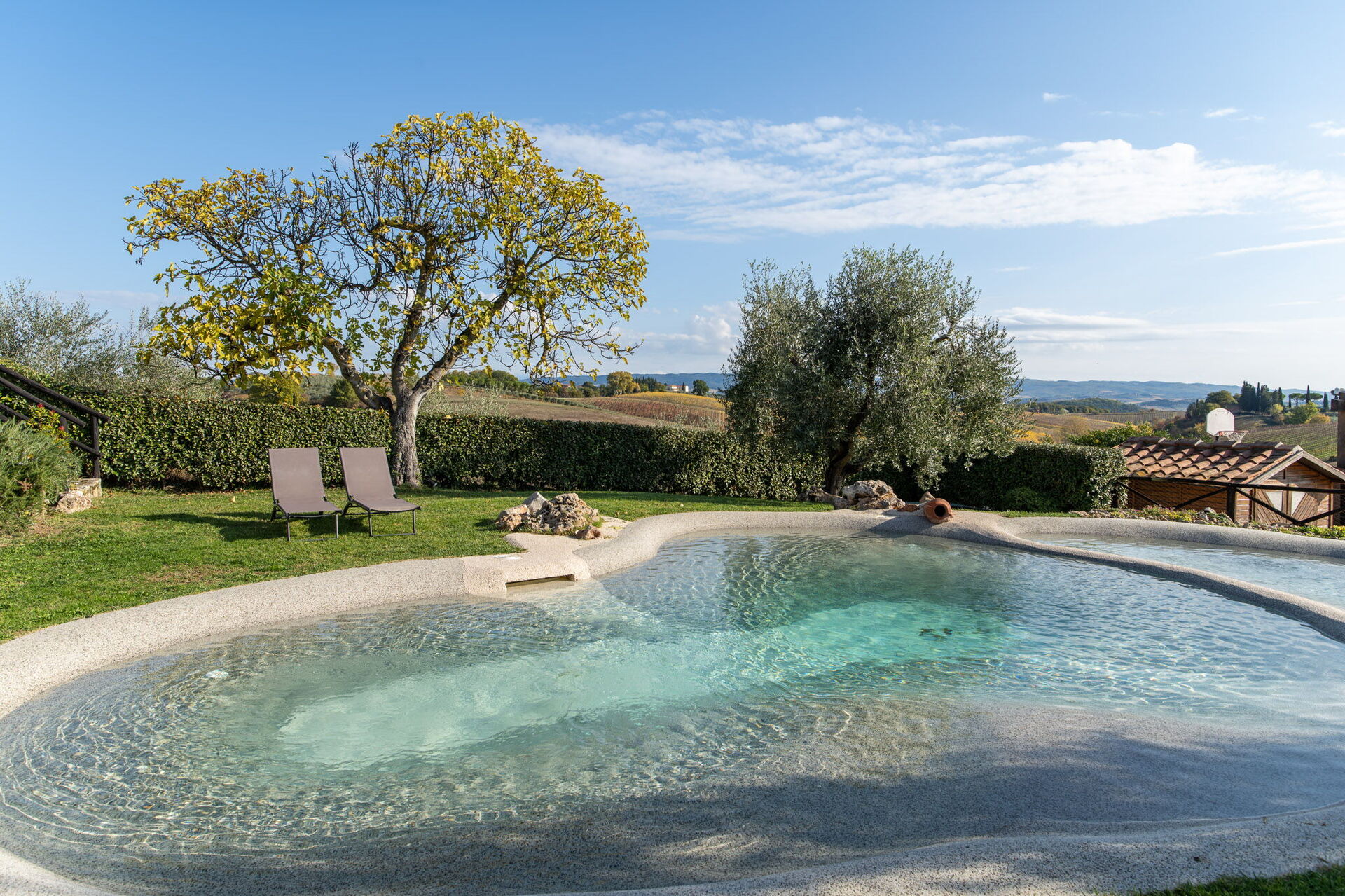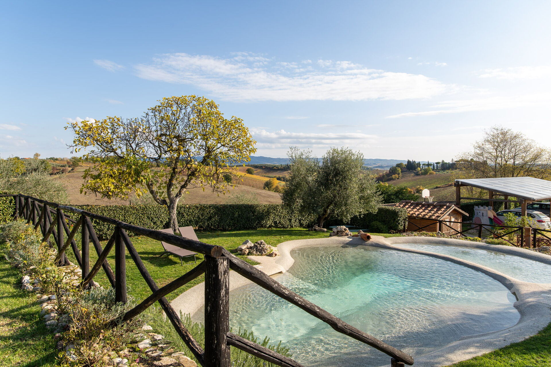 All'arrivo a Villa L'elsa Beautiful Country Home With View troverai una incantevole casa vacanze, pulita e tenuta in ottime condizioni con vista sulle colline, perfetta per una tranquilla vacanza in Toscana. Dopo una impegnativa giornata ricca di gite turistiche, concediti del tempo con famiglia e amici a bordo piscina per gustarti una bibita rinfrescante o un buon calice di vino - non c'è niente di meglio per rilassarti alla fine della giornata. Avrai a tua disposizione all'aperto anche un barbecue e una vasca idromassaggio. Se provi piacere nel cucinare per la tua famiglia e i tuoi amici, la proprietà è provvista di una cucina ben accessoriata con macchinetta per il caffè, microonde, tostapane, fornelli e frigorifero, così come un numero sufficiente di stoviglie e posate per un massimo di 14 persone. Se preferisci mangiare all'aperto, c'è a tua disposizione una veranda completamente accessoriata dove potrai goderti il bel tempo durante i tuoi pasti.