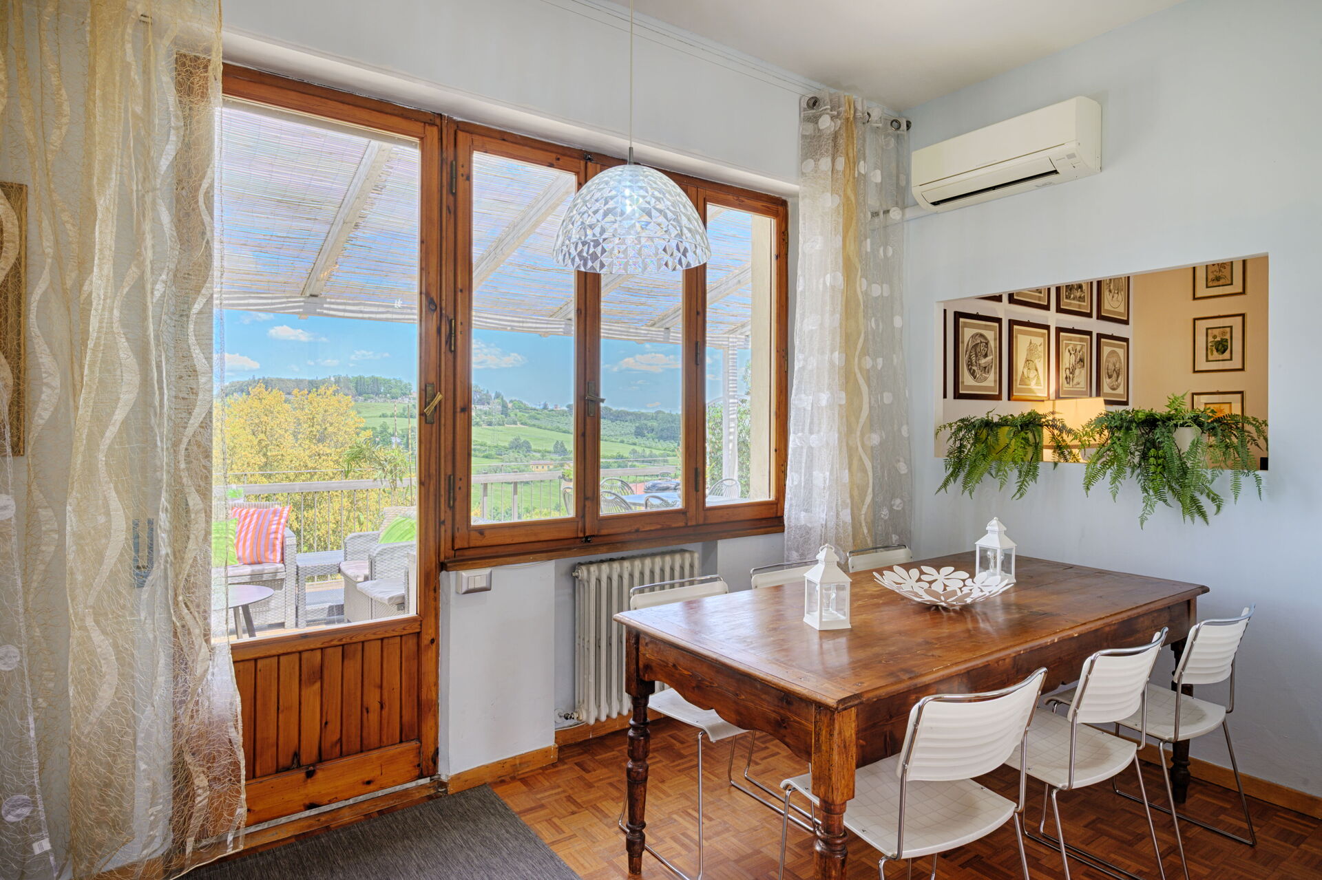 Una volta arrivato sarai accolto dal proprietario o dal gestore della tua bellissima casa vacanze, una proprietà pulita e tenuta in ottime condizioni con vista sulle colline, ideale per una piacevole vacanza in Toscana. A prescindere da come trascorrerai le tue giornate - imbarcandoti in gite fuori porta, facendo shopping, visitando i più famosi musei della zona o semplicemente guidando nell'entroterra, quando arriverai a casa la sera avrai la possibilità di riposarti con famiglia e amici concludendo in bellezza un altro fantastico giorno di vacanza in Toscana. Avrai a tua disposizione all'aperto anche una vasca idromassaggio, un patio e un barbecue. Condividere un pasto in compagnia di famiglia e amici è un importante aspetto della cultura toscana. Approfitta della cucina ben accessoriata per preparare pasti utilizzando prodotti locali freschi e genuini mentre ti trovi in vacanza. La cucina è provvista di macchinetta del caffè, microonde, tostapane, fornelli e frigorifero, così come un numero sufficiente di stoviglie e posate per un massimo di otto persone. Pranza o cena all'aperto, la veranda completamente accessoriata è la cornice ideale per godersi del buon cibo, la compagnia della propria famiglia o gruppo di amici e il meraviglioso clima toscano.