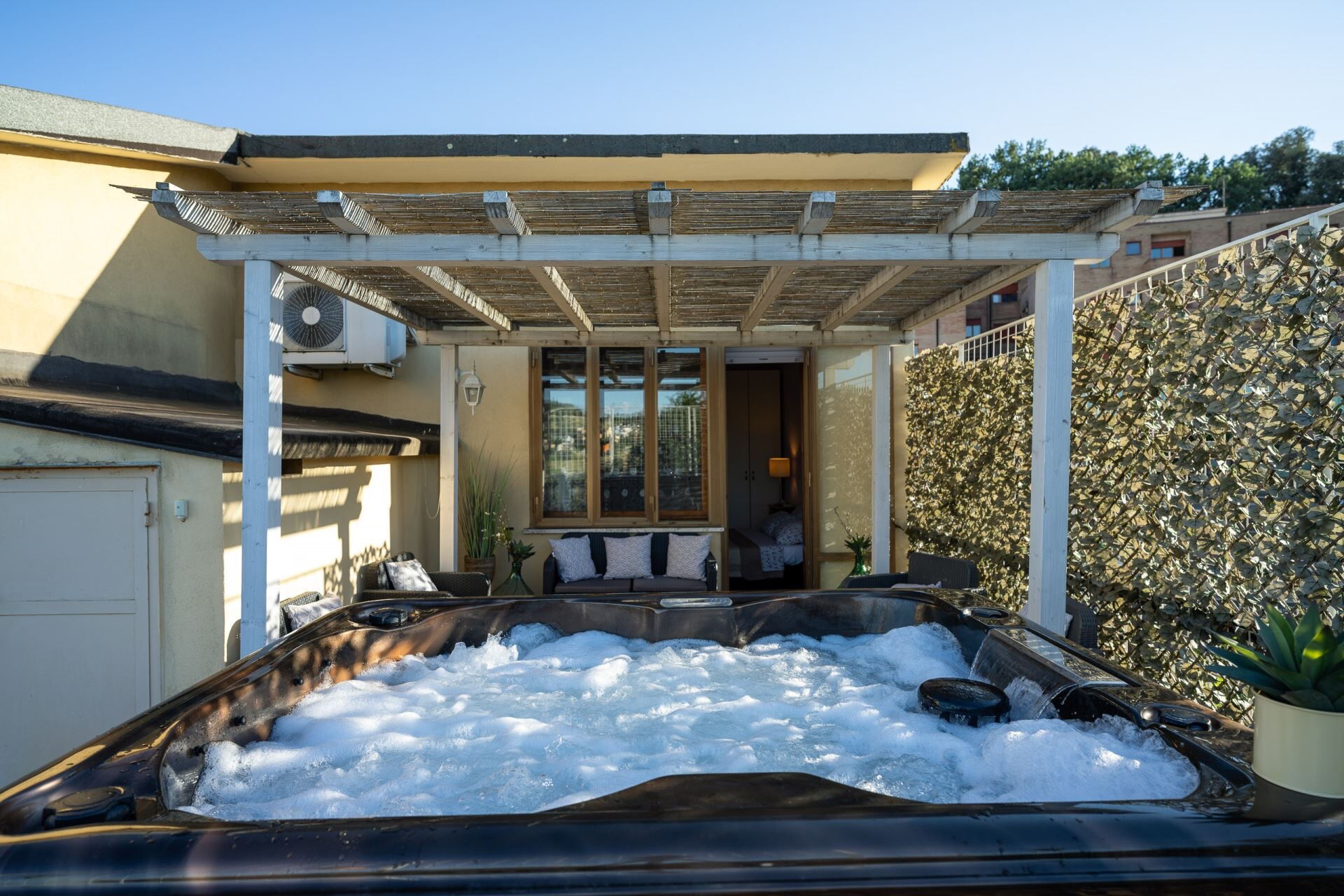 Terrazza (80 m2): vasca idromassaggio esterna (larghezza: 1.5m, lunghezza: 2m), possibilità di mangiare all'aperto, tavolo da pranzo (persone: 8), internet WIFI, barbeque, arredamento da giardino, arredamento da terrazza, quattro sdraio.