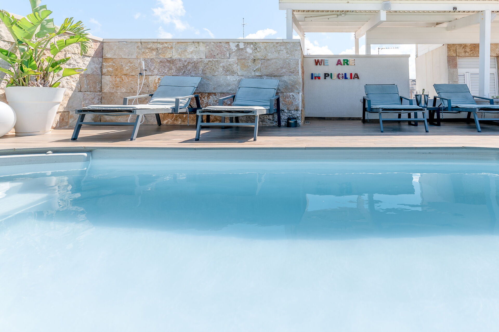 Terrazza: arredamento da terrazza, sdraio, piscina.