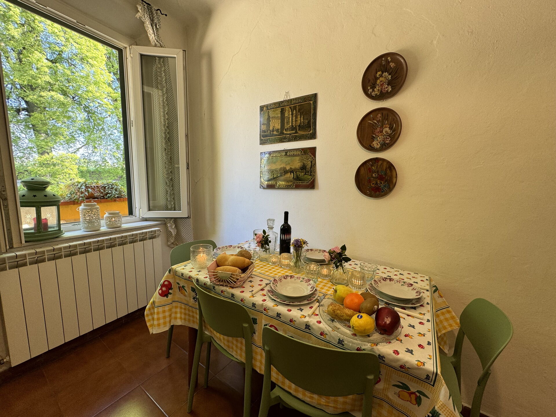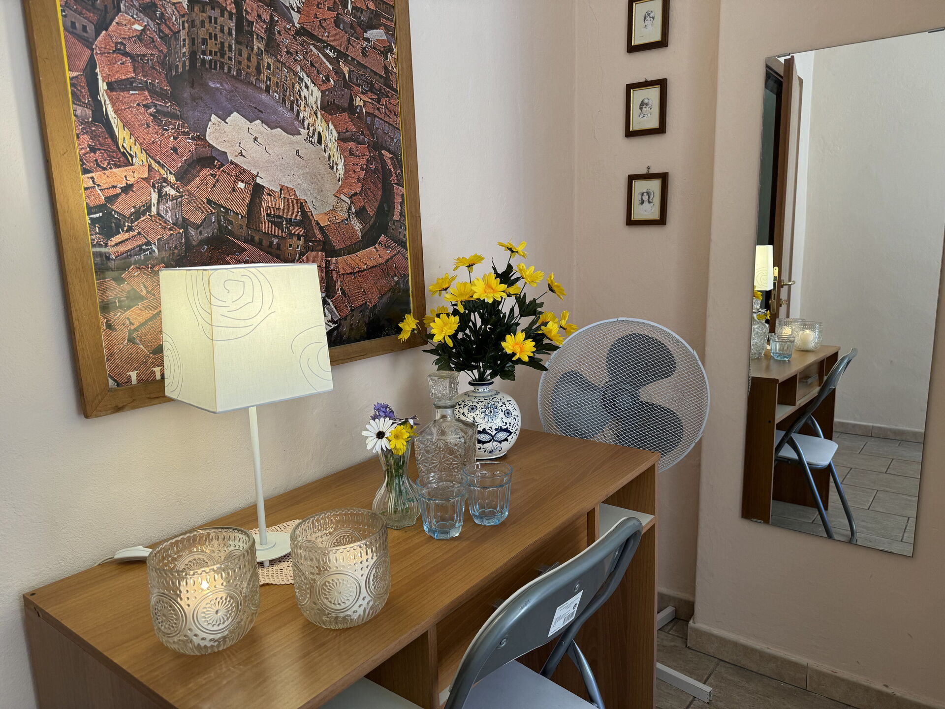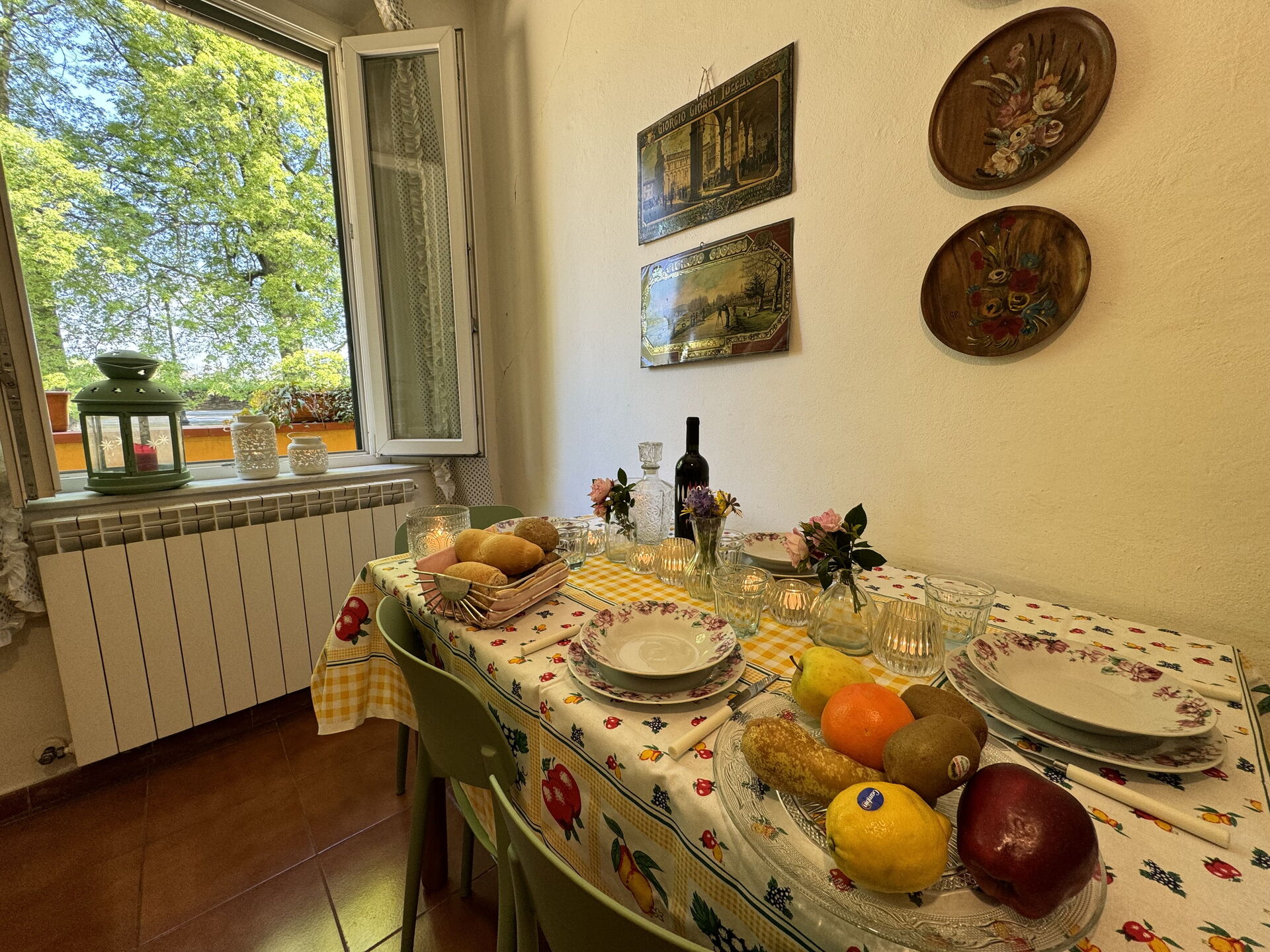 Una volta arrivato sarai accolto dal proprietario o dal gestore della tua splendida casa vacanze, una proprietà pulita e tenuta in ottime condizioni con vista sulla città, perfetta per una rilassante vacanza in Toscana. A prescindere da come trascorrerai le tue giornate - visitando i più famosi musei della zona, imbarcandoti in gite fuori porta, facendo shopping o semplicemente guidando nell'entroterra, quando arriverai a casa la sera avrai la possibilità di riposarti con famiglia e amici concludendo in bellezza un altro fantastico giorno di vacanza in Toscana. Condividere un pasto in compagnia di famiglia e amici è un importante aspetto della cultura toscana. Approfitta della cucina ben accessoriata per preparare pasti utilizzando prodotti locali freschi e genuini mentre ti trovi in vacanza. La cucina è provvista di macchinetta del caffè, microonde, tostapane, fornelli e frigorifero, così come un numero sufficiente di stoviglie e posate per un massimo di quattro persone.