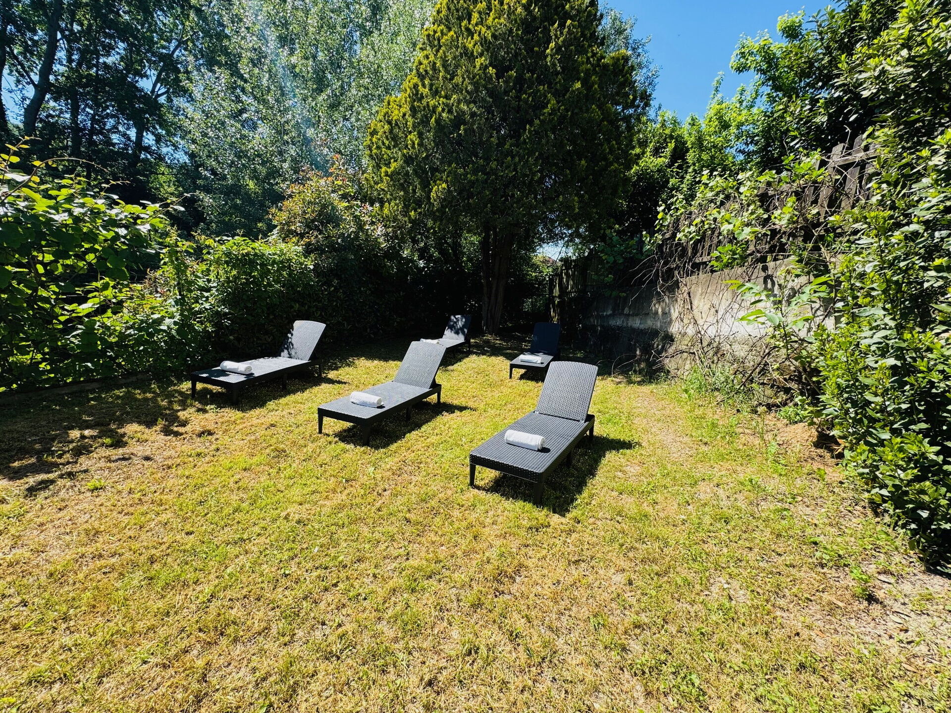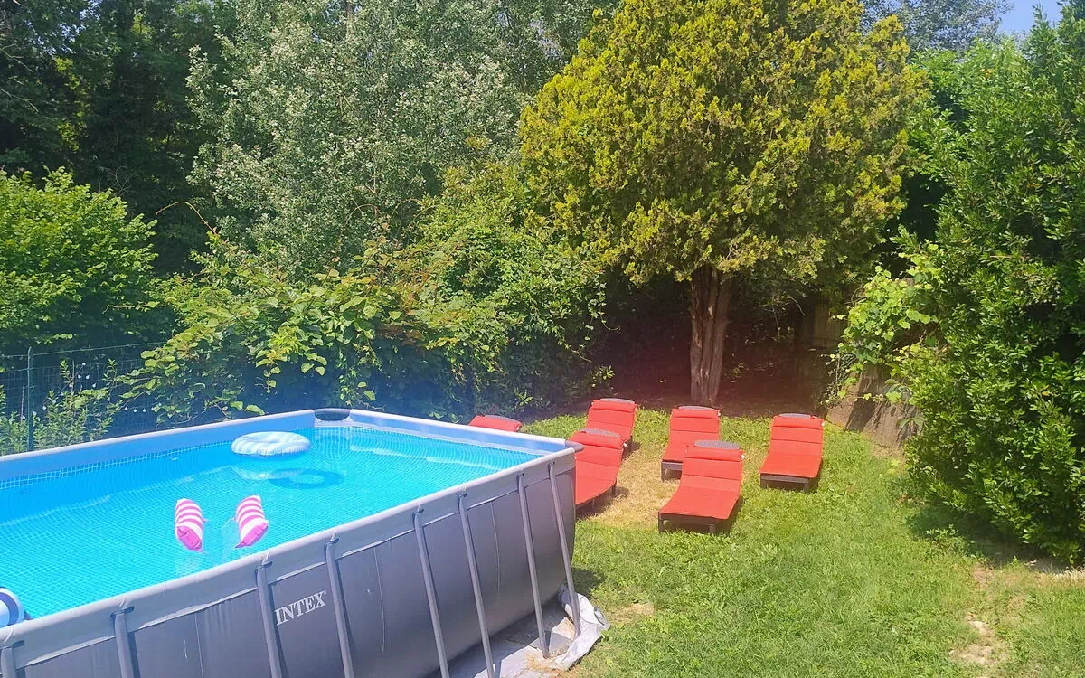 Giardino (500 m2): piscina, barbeque, possibilità di mangiare all'aperto, tavolo da pranzo (persone: 9), arredamento da giardino, arredamento da terrazza, sei sdraio, proprietà recintata.