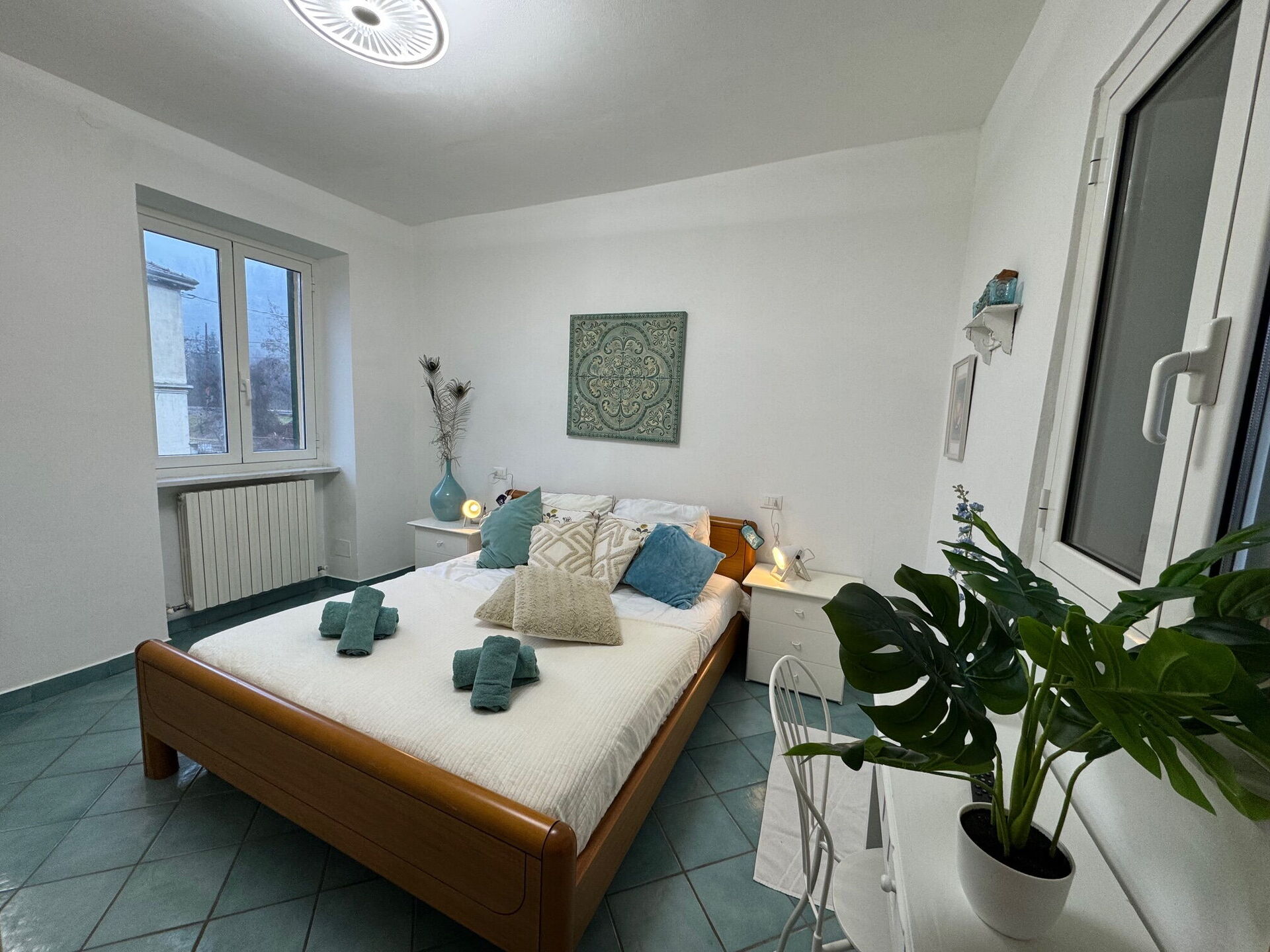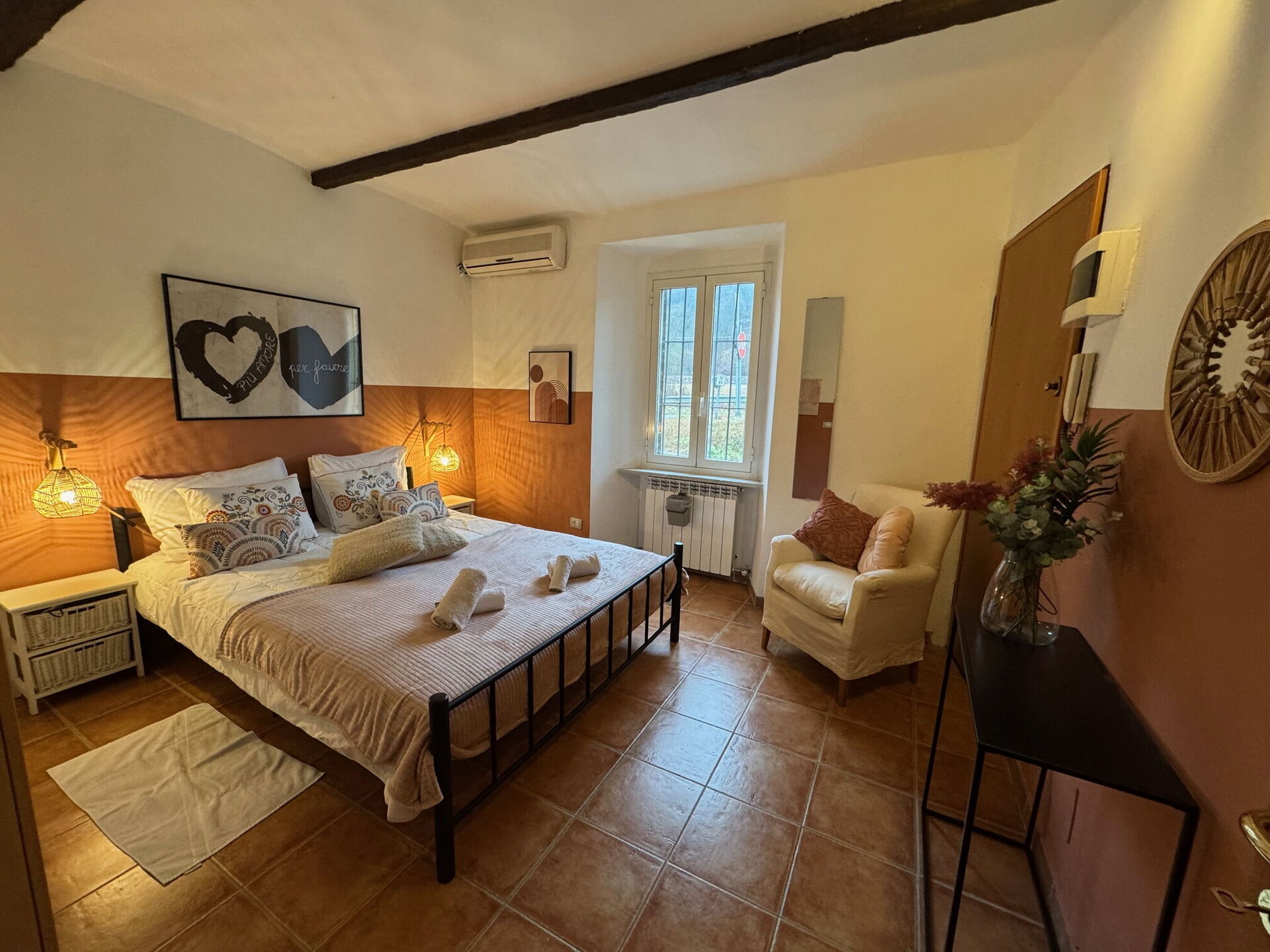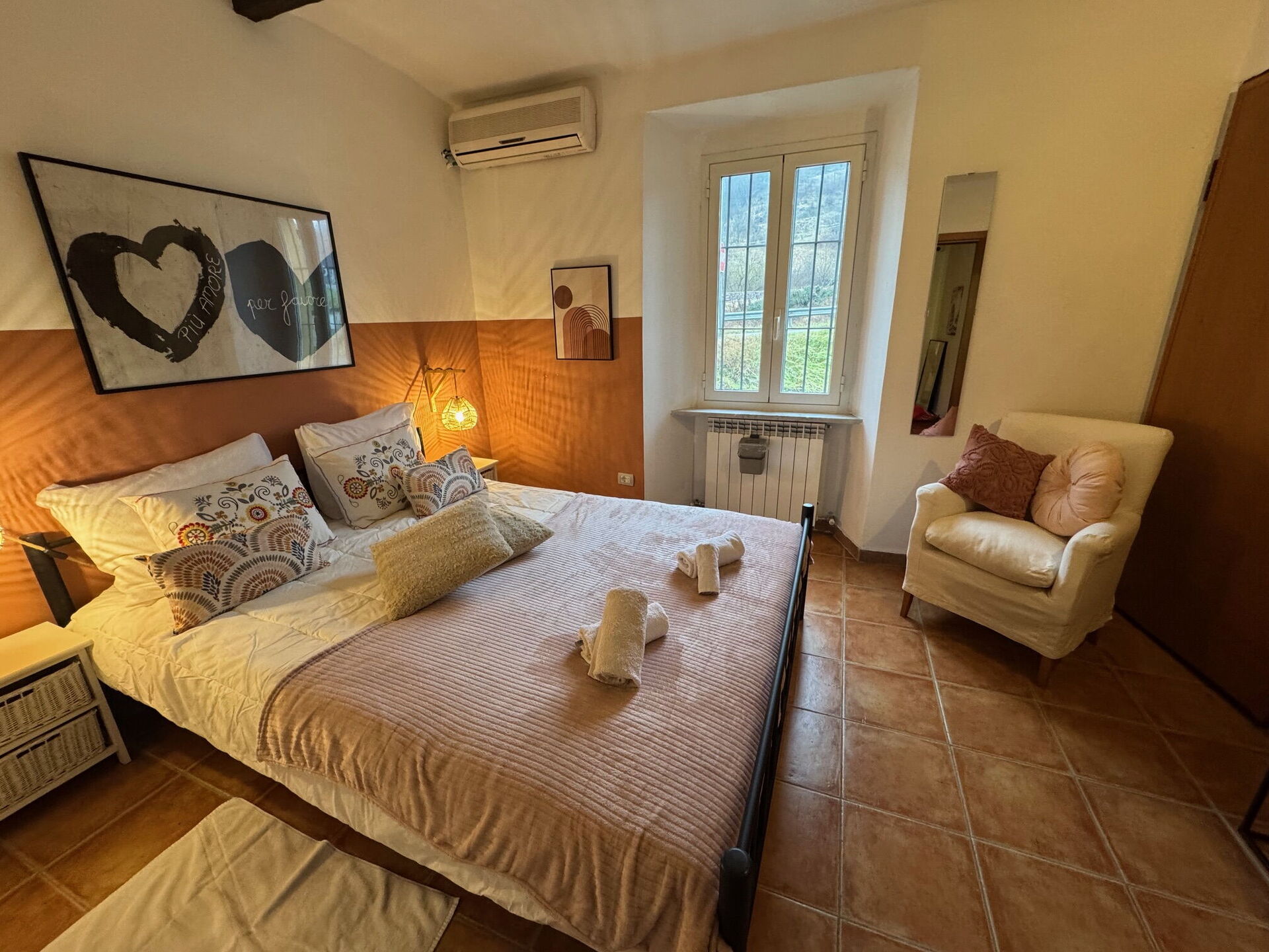 Camera da letto 1 (12 m2): letto matrimoniale, ventilatore portatile.