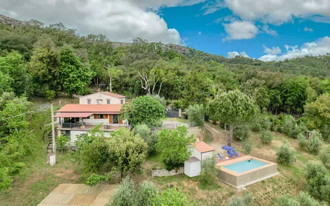 La proprietà è una casa di 5 stanze che si estende su 150 metri quadrati su due livelli, caratterizzata da un arredamento spazioso e rustico. Il soggiorno/sala da pranzo dispone di un camino aperto, una TV e l'aria condizionata, con un'uscita che conduce alla terrazza. Una camera doppia è dotata di aria condizionata e ha accesso alla terrazza. Un'altra stanza ha un letto francese di 120 cm. C'è anche una camera doppia senza finestra. La cucina aperta include un forno, una lavastoviglie, quattro fuochi a gas, una macchina elettrica per il caffè e una stufa a legna, con un'uscita che conduce alla terrazza. Al piano superiore, troverete una camera doppia con aria condizionata e una stanza di passaggio con un letto matrimoniale e aria condizionata. La proprietà vanta due docce, due bidet e due toilette.