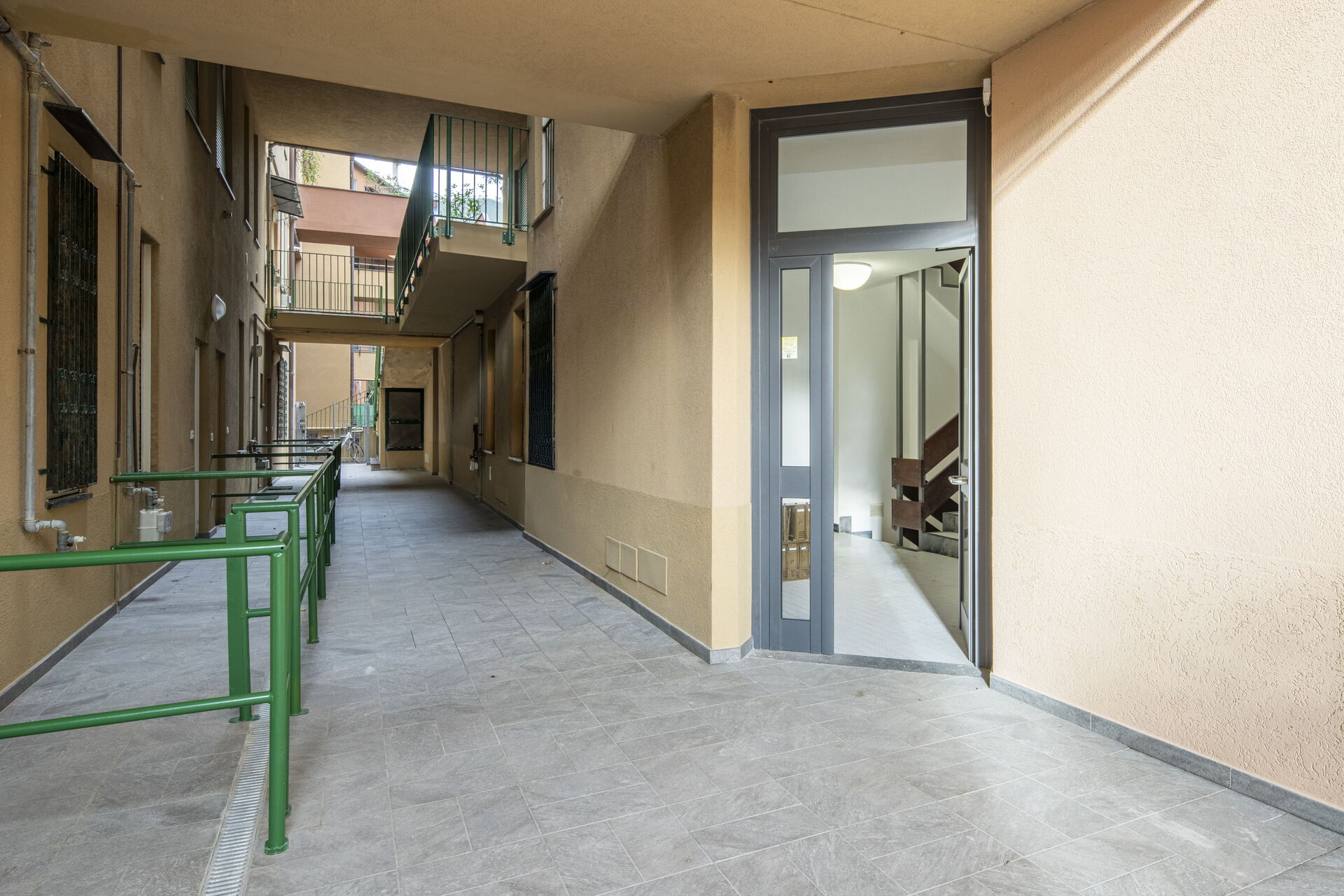 L'appartamento è posto al piano terra ed è presente anche l'ascensore che consente l'accesso direttamente dal piano strada, per chi volesse evitare le scale esterne del condominio.