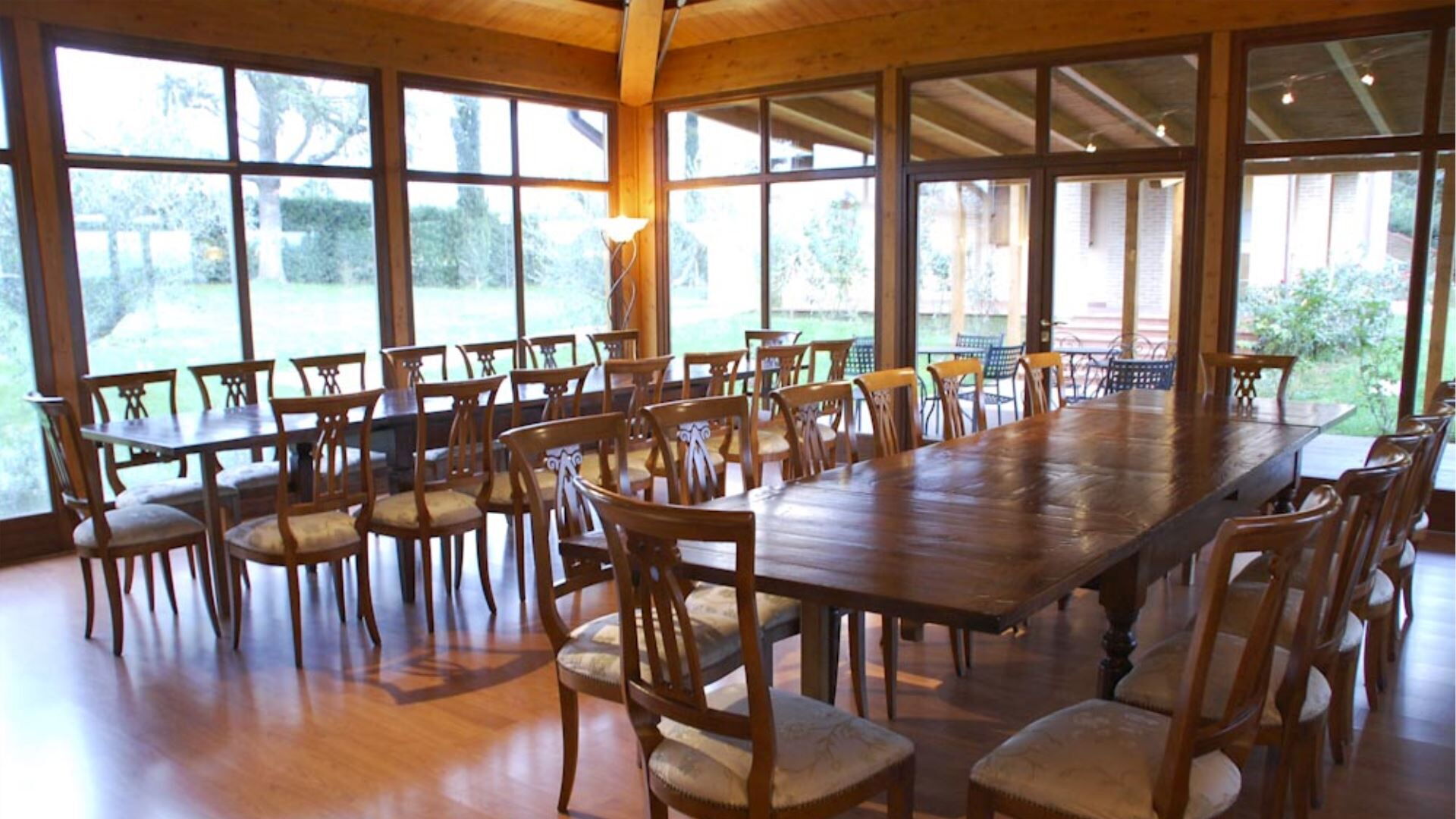 Questa imponente villa ospita una capacità massima di 26 ospiti in letti, con ulteriori 8 ospiti possibili utilizzando i divani letto situati nei soggiorni dei vari appartamenti, portando la capacità totale a 34. La proprietà contiene in totale 13 camere da letto e 12 bagni, di cui 10 bagni con doccia più 2 bagni di servizio situati nell'area comune centrale. L'alloggio è suddiviso con cura in sezioni distinte. La parte centrale presenta 3 grandi sale al piano terra, ciascuna di circa 100 metri quadrati con eleganti finiture in legno stratificato e ampie finestre che inondano gli spazi di luce naturale. Il primo vano ospita un generoso soggiorno arredato con comodi divani, televisore e impianto di ascolto musicale. Il secondo vano contiene un'imponente area bar con divani, una cucina di livello professionale dotata di elettrodomestici industriali adatti a grandi gruppi e una zona lavaggio separata con attrezzature da forno. Il terzo vano offre una magnifica sala da pranzo con posti a sedere per 40 persone. La villa include una grande struttura composta da 5 appartamenti interconnessi che possono funzionare indipendentemente se desiderato. Tre di questi appartamenti presentano ciascuno una camera matrimoniale o doppia, un soggiorno e un bagno. Un appartamento contiene due camere matrimoniali o doppie con un bagno. L'appartamento mansardato offre due camere matrimoniali e 2 camere matrimoniali o doppie con due bagni. Inoltre, una struttura più piccola comprende 4 appartamenti indipendenti identici, ciascuno contenente una camera matrimoniale, un bagno, un soggiorno e una cucina. I divani letto sono posizionati nei soggiorni degli appartamenti, offrendo soluzioni di pernottamento flessibili per gruppi più numerosi.