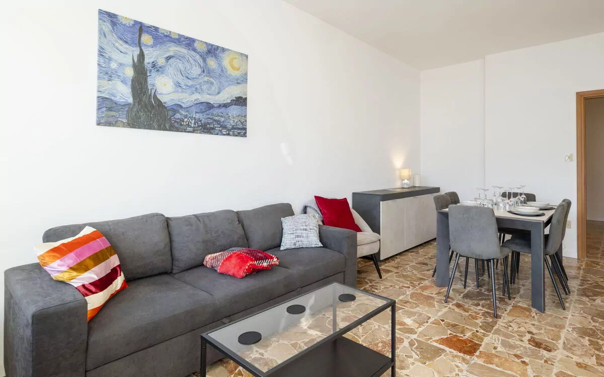 Il vostro appartamento per vacanze include aria condizionata e riscaldamento disponibili per il vostro comfort durante tutto l'anno. L'unità può ospitare una capacità massima di 5 ospiti nelle sue 2 camere da letto e 1 bagno. Avrete accesso a una lavatrice per la vostra comodità durante il soggiorno. La cucina è attrezzata con lavastoviglie, microonde e forno per la preparazione dei pasti. Una televisione è disponibile nella zona giorno per il vostro intrattenimento. La proprietà accetta animali domestici, con un massimo di 1 animale domestico o cane consentito. I servizi aggiuntivi includono un seggiolone per bambini, un lettino per neonati disponibile a un costo aggiuntivo e un asciugacapelli. Potrete usufruire dell'accesso gratuito a Internet con WiFi durante tutto il soggiorno. Le capsule per la macchina del caffè Nespresso sono fornite gratuitamente. La proprietà include un parcheggio in garage. Le moderne caratteristiche di sicurezza includono un rilevatore di fumo e un estintore.