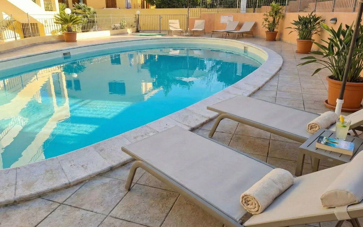 Troverete le strutture della piscina condivisa progettate a forma di fagiolo, che offrono ampio spazio per il relax e lo svago durante i mesi estivi. L'area della piscina include una doccia esterna per il vostro uso. La residenza mantiene orari di apertura specifici della piscina tra le 09:00 e le 13:30, e nuovamente dalle 15:00 alle 21:00 durante il periodo di disponibilità stagionale. L'accesso alla proprietà richiede di percorrere un tragitto carrabile di 30 metri, con ulteriori 100 metri tramite una strada sterrata, conferendo un senso di isolamento all'ambiente esterno.