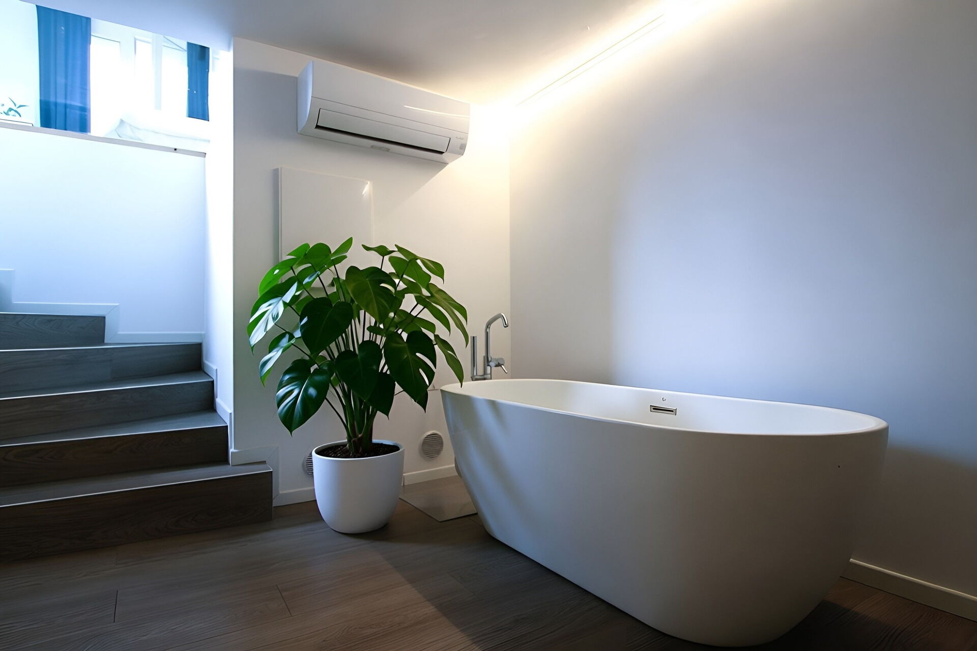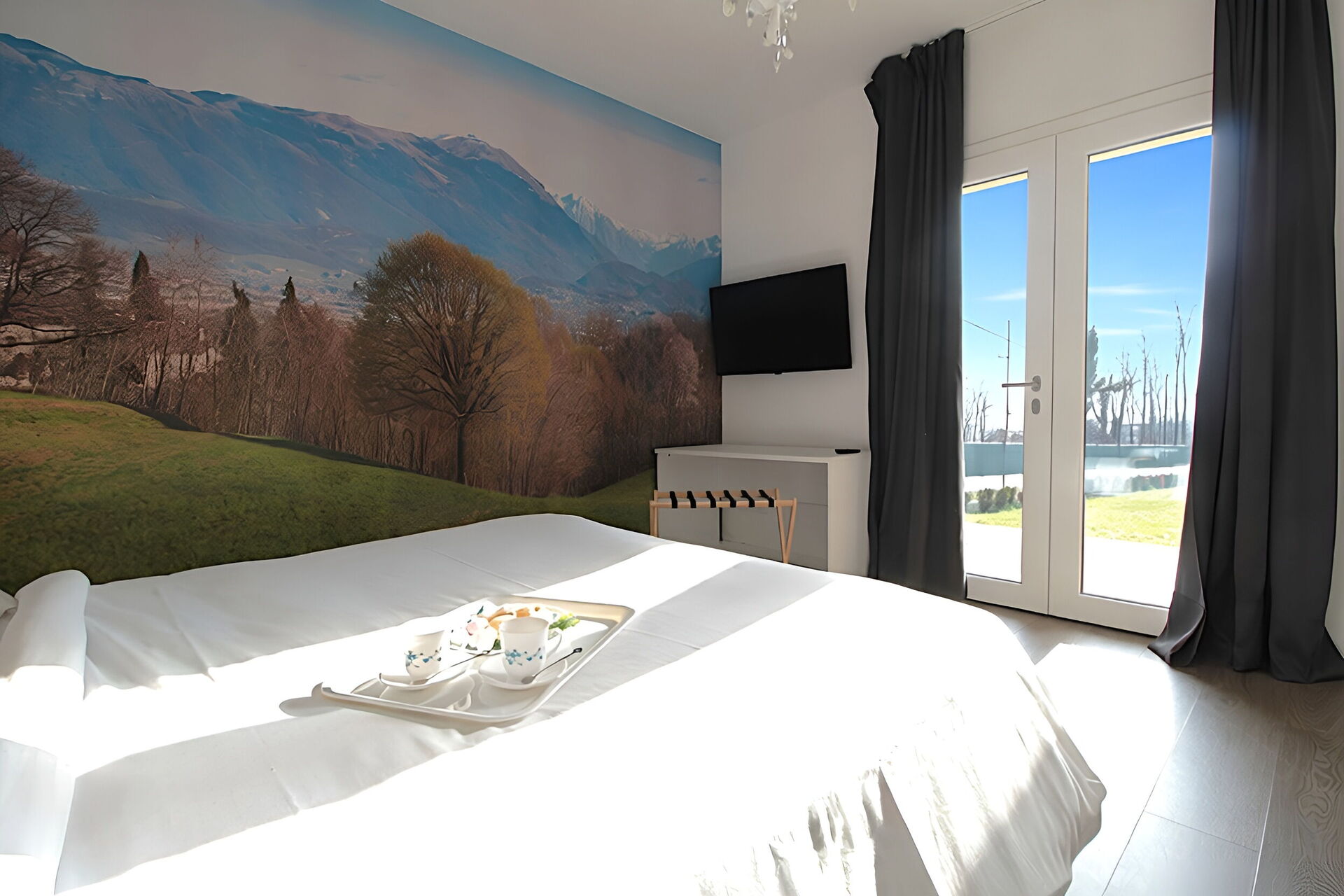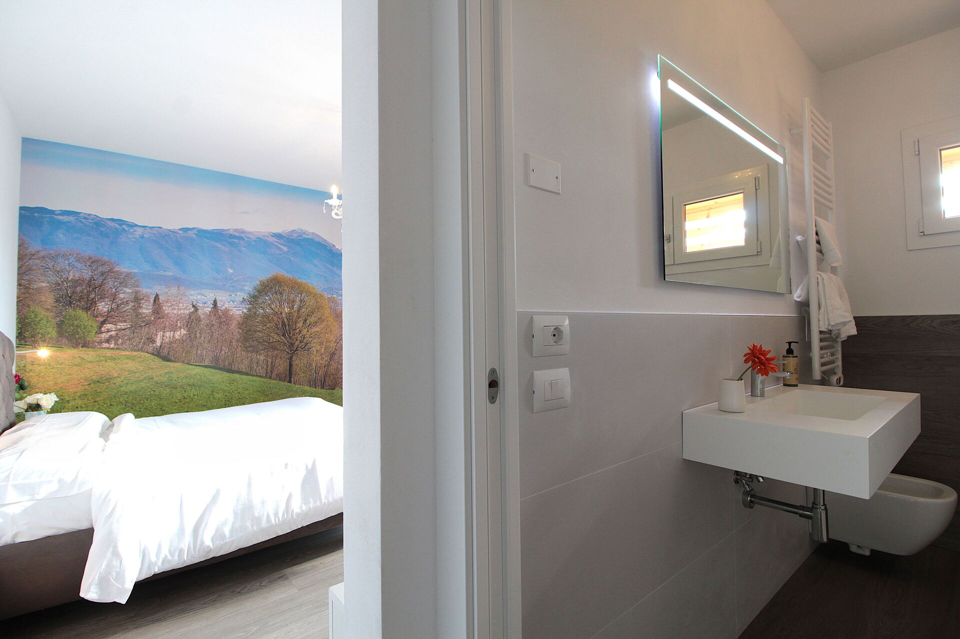 Camera da letto con bagno: letto matrimoniale, internet WIFI, aria condizionata, lavandino, wc, bidet, doccia, asciugacapelli.