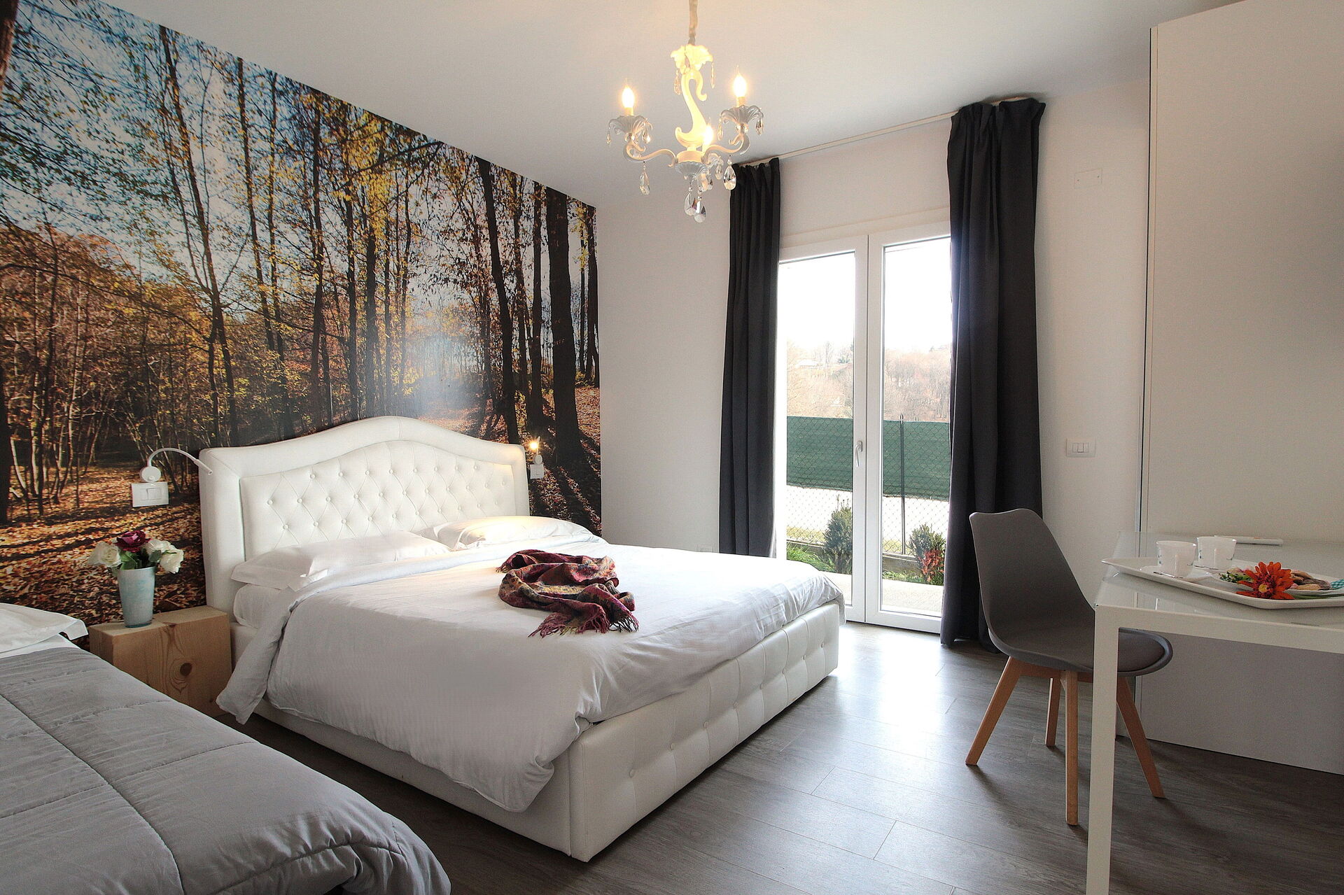 Camera da letto 1: letto matrimoniale, letto singolo, internet WIFI, aria condizionata, uscita sul giardino.