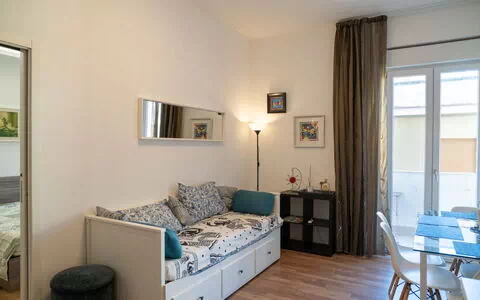 Il vostro alloggio per le vacanze a Termoli Down Town è un pratico appartamento di 2 locali di 45 metri quadrati, situato al 1° piano. Il soggiorno e la sala da pranzo dispongono di un divano letto matrimoniale, televisione e aria condizionata, con accesso diretto al balcone. La camera da letto è arredata con un letto matrimoniale e una televisione, e offre anche un'uscita sul balcone. La cucina a vista è dotata di lavastoviglie, 4 piastre a induzione, bollitore e macchina da caffè elettrica. Il bagno include doccia, bidet e WC.