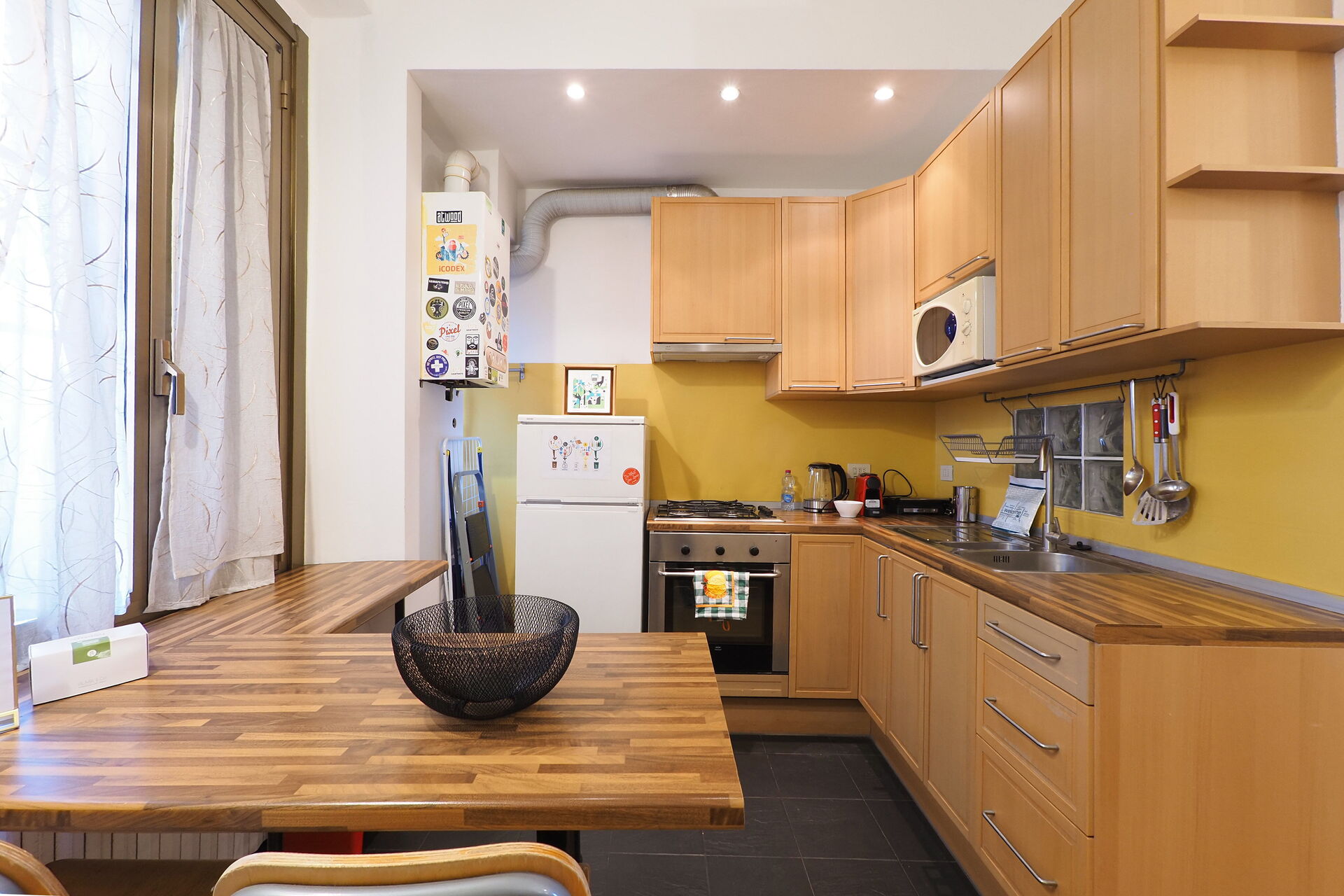 Cucina: cucina ben attrezzata, tavolo da pranzo, frigo, freezer, piano cottura, forno, macchina da caffè (italiana), macchina da caffè americano, internet WIFI, rilevatore di fumo, rilevatore di co2.