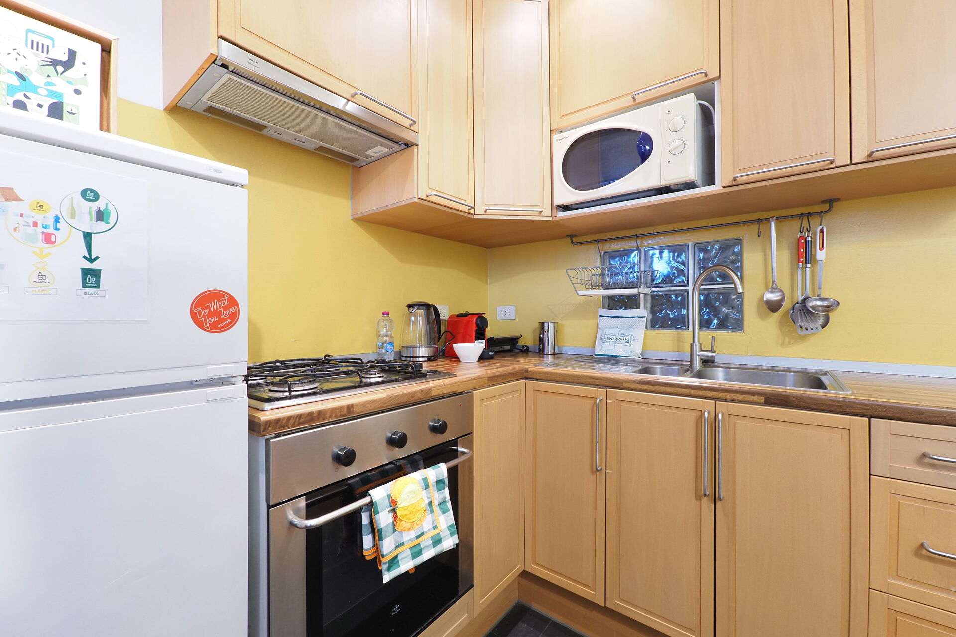 Una volta arrivato troverai una elegante casa vacanze pulita e in ottime condizioni, perfetta per una tranquilla vacanza in Lombardia. Uno dei fattori che rende il soggiorno in una casa vacanze più piacevole di quello in più camere d'albergo, è la possibilità di rilassarsi tutti insieme dopo una lunga giornata di visite turistiche; un'occasione per godersi un pasto insieme a famiglia e amici con del buon vino locale per concludere al meglio la giornata. Condividere un pasto in compagnia di famiglia e amici è un grande aspetto della cultura italiana. Approfitta della cucina ben accessoriata per preparare pasti utilizzando prodotti locali freschi e genuini mentre ti trovi in vacanza. La cucina è provvista di macchinetta del caffè, fornelli e frigorifero, così come un numero sufficiente di stoviglie e posate per un massimo di quattro persone.