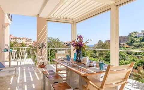 Il vostro alloggio per le vacanze include aria condizionata e riscaldamento ad aria forzata per garantire il vostro comfort durante tutto il soggiorno. La villa dispone di lavatrice, lavastoviglie, barbecue, microonde e televisione per la vostra comodità. L'ampia terrazza è parzialmente coperta e arredata con mobili da terrazza, attrezzatura per barbecue e sedie a sdraio, offrendo una vista molto bella sul mare e sulla città. Un patio privato è disponibile per il vostro divertimento. I servizi aggiuntivi includono un asciugacapelli, accesso a internet con WiFi gratuito e parcheggio. Una stazione di ricarica elettrica è disponibile sulla proprietà. La villa può ospitare una capacità massima di 6 ospiti nelle sue 3 camere da letto e 4 bagni.