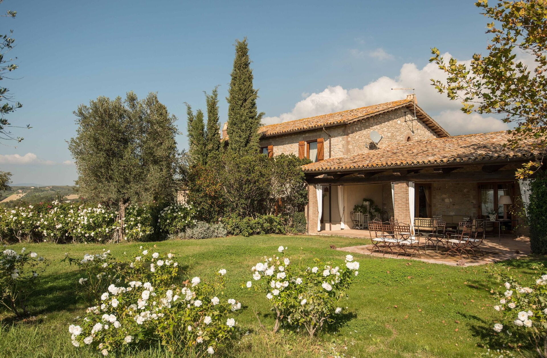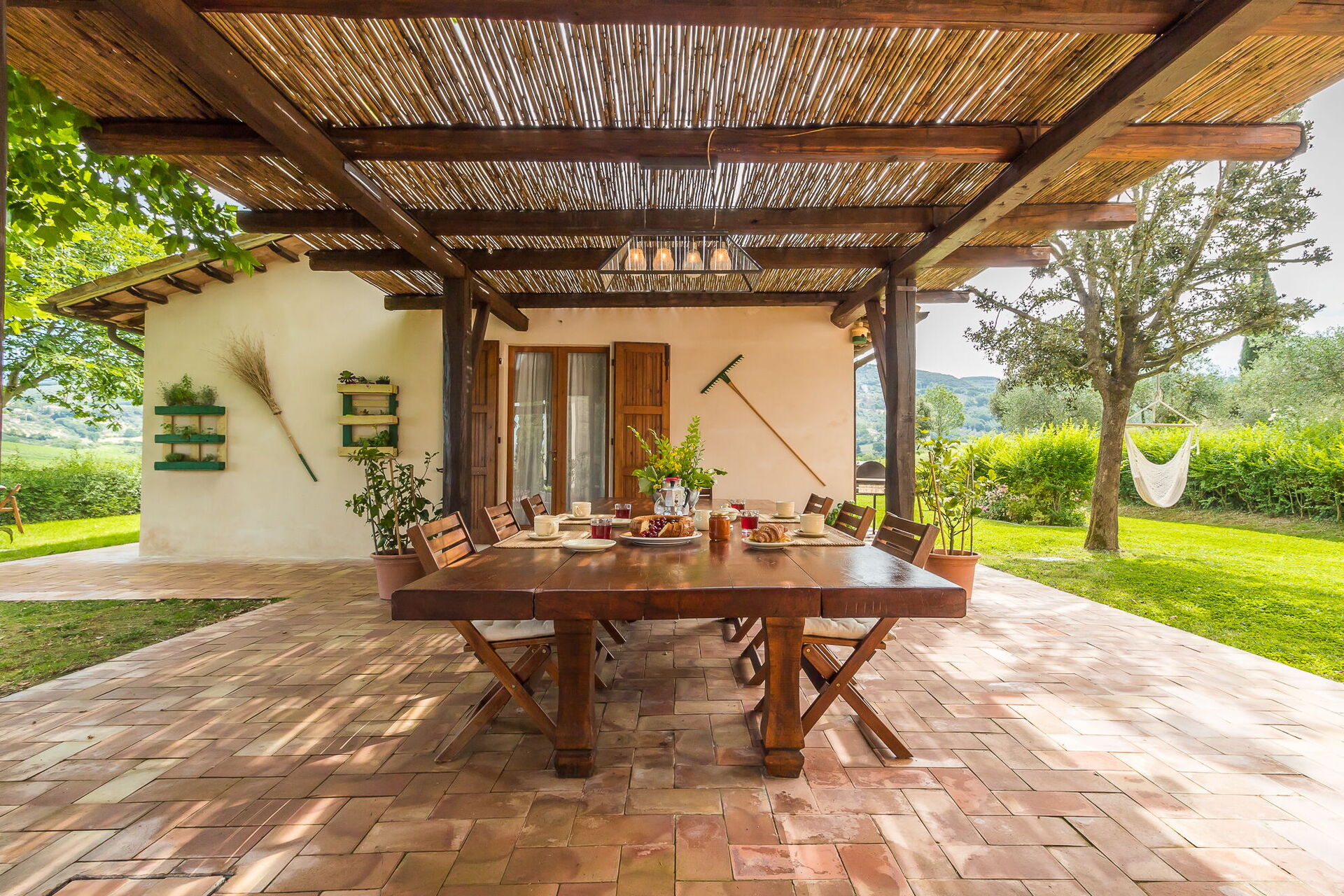 Il Molinazzo è un'elegante villa di campagna indipendente che ospita da 10 a 14 persone in 7 camere da letto e 7,5 bagni, perfettamente posizionata per esplorare la parte meridionale della Toscana, l'Umbria e il Lazio. Situata a Montecchio, Italia, a soli 20 km dalla pittoresca città di Orvieto, questa proprietà recentemente restaurata si estende su 500 metri quadrati di spazi interni e si trova all'interno di 2 ettari di terreno. Troverete che l'alloggio è stato arredato personalmente con gusto eccellente dai proprietari, raggiungendo un meraviglioso equilibrio tra mobili antichi e comfort moderni. La proprietà dispone di una piscina panoramica situata in una posizione dominante che offre viste spettacolari sulla campagna ondulata. L'aria condizionata è disponibile in tutte le camere da letto per garantire il vostro comfort durante i caldi mesi estivi, e la connessione Internet Wifi è disponibile durante tutto il vostro soggiorno. L'ampio cortile comprende giardini curati ricchi di rose, lavanda e altre piante fiorite, il tutto circondato da uliveti e cipressi in un paesaggio modellato da secoli di paziente tradizione agricola. Il Molinazzo è composto da 2 case in pietra adiacenti, con la casa principale che ospita fino a 10 persone in 5 camere da letto e 5 bagni, mentre una dependance più piccola accoglie ospiti aggiuntivi in 2 camere da letto e 2 bagni più una lavanderia. Questa disposizione rende la proprietà ideale per riunioni di famiglia o gruppi da 5 a 7 coppie che cercano sia privacy che spazi comuni.