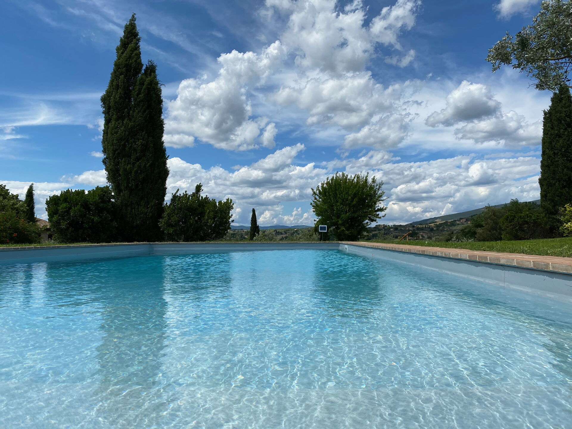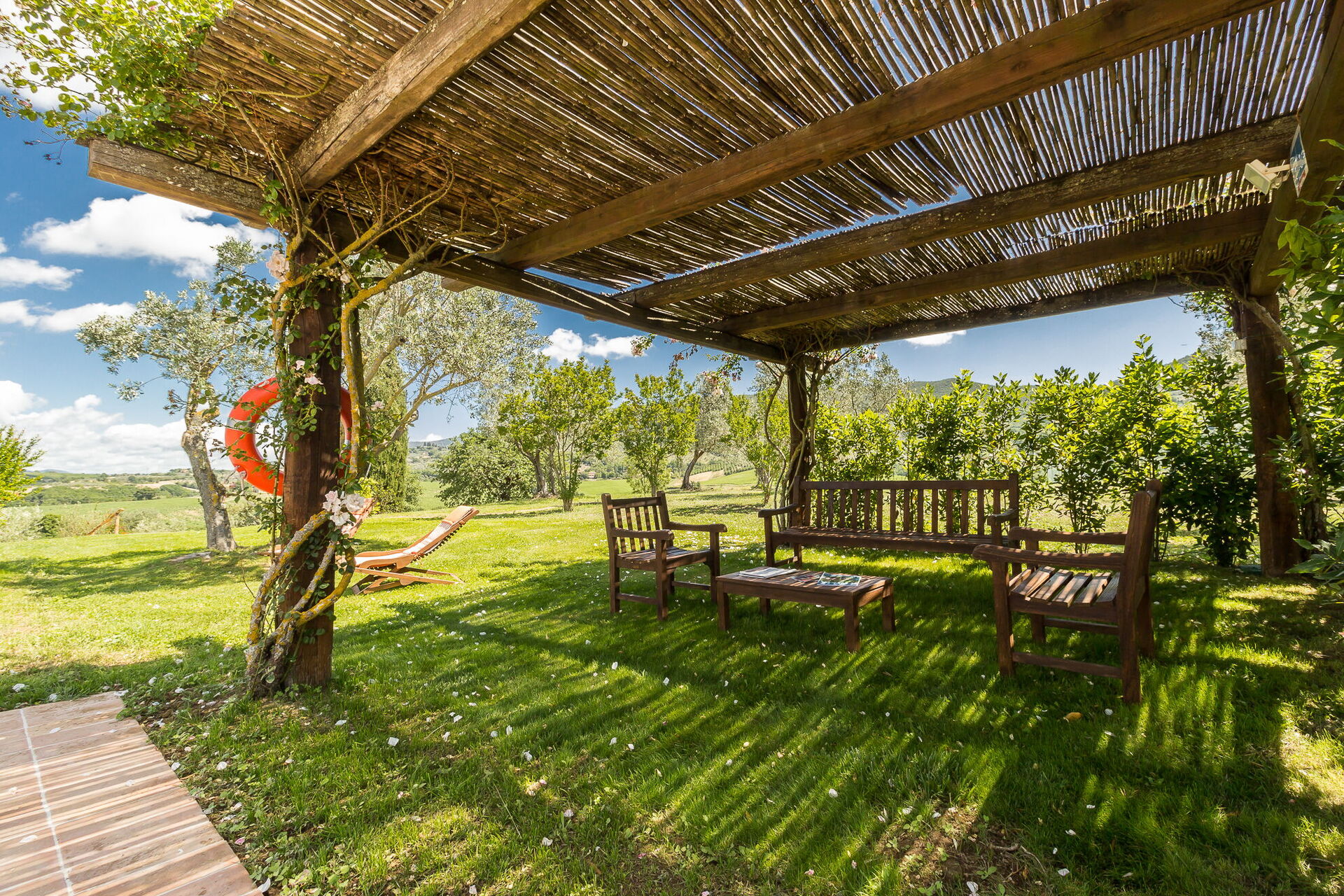 Panoramic Swimming Pool (12 x 6 meters; depth 60 to 1.70 meters) surrounded by olive groves and lovely views over the countryside; covered pergola and sun beds for 14.