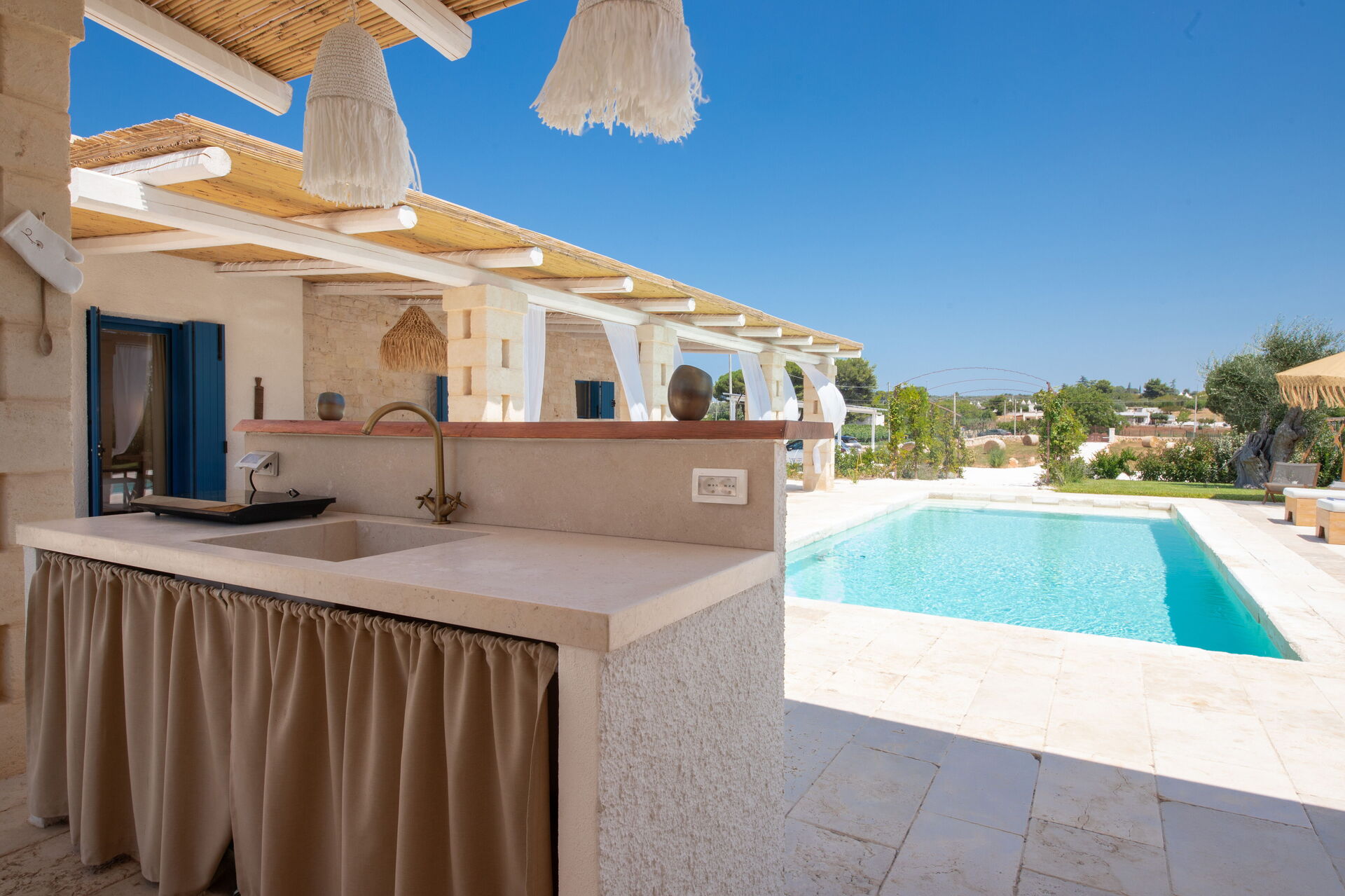 All'arrivo troverai una elegante casa vacanze pulita e in ottime condizioni, perfetta per una rilassante vacanza in Puglia. A prescindere da come trascorrerai le tue giornate - visitando i più famosi musei della zona, imbarcandoti in gite fuori porta, facendo shopping o semplicemente guidando nell'entroterra, quando arriverai a casa la sera avrai la possibilità di riposarti con famiglia e amici a bordo piscina concludendo in bellezza un altro fantastico giorno di vacanza in Puglia. Per il tuo divertimento, sul posto troverai un barbecue e un patio. Se provi piacere nel cucinare per la tua famiglia e i tuoi amici, la proprietà è provvista di una cucina ben accessoriata con macchinetta per il caffè, microonde, tostapane, fornelli e frigorifero, così come un numero sufficiente di stoviglie e posate per un massimo di otto persone.