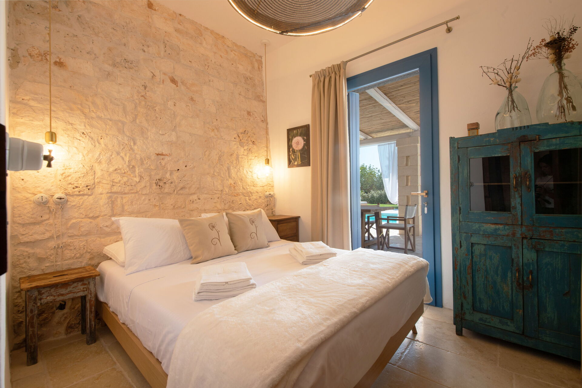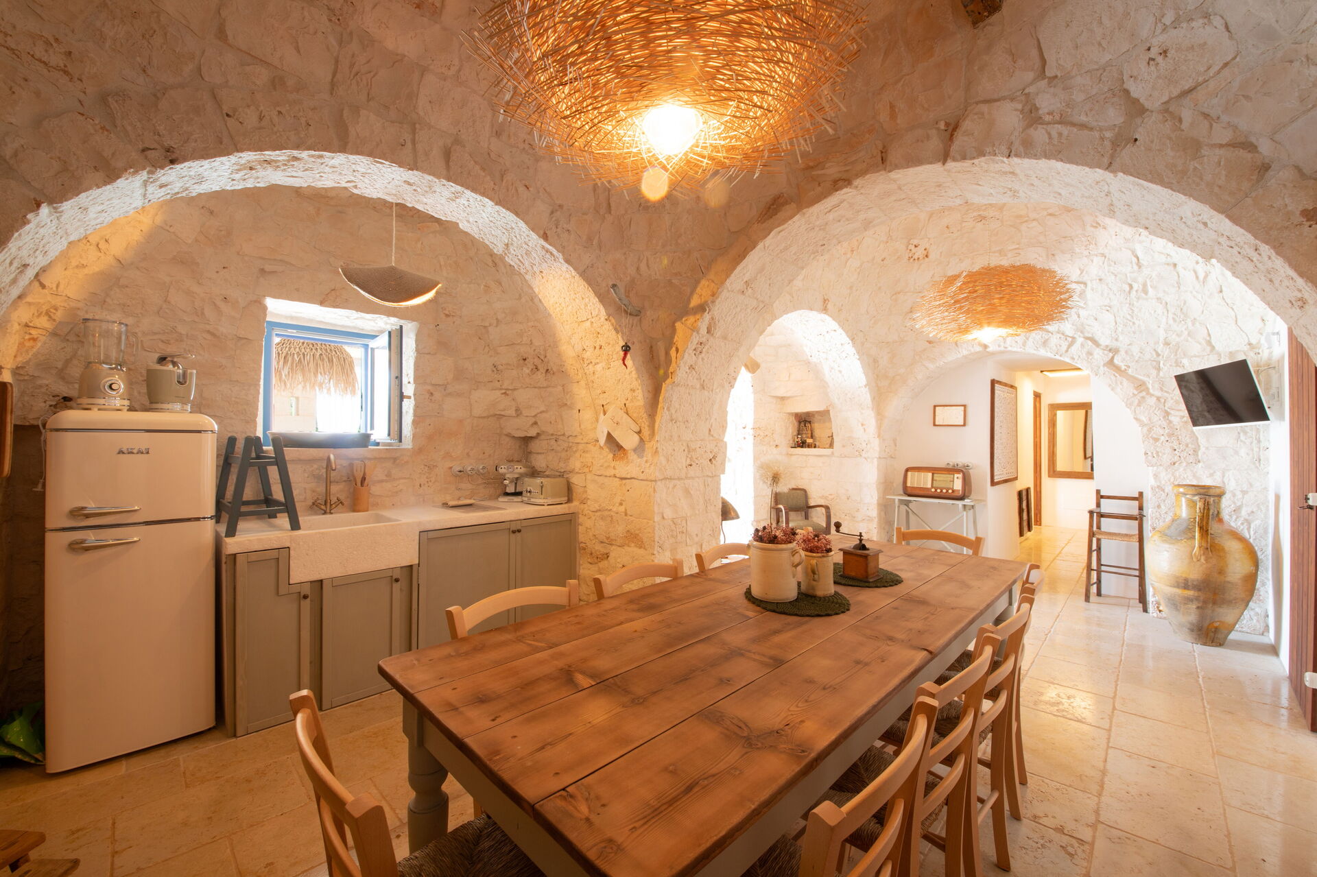 La proprietà è posizionata vicino Martina Franca (Italia), nell'area turistica "Salento" e solo a 20 km di distanza da Ostuni. La struttura Trulli Valle D'Itria - Martina Franca è una incantevole proprietà (130 mq) che offre piscina privata, internet Wi-Fi e aria condizionata. La proprietà può accogliere comodamente fino a otto ospiti in quattro camere da letto con tre bagni.
