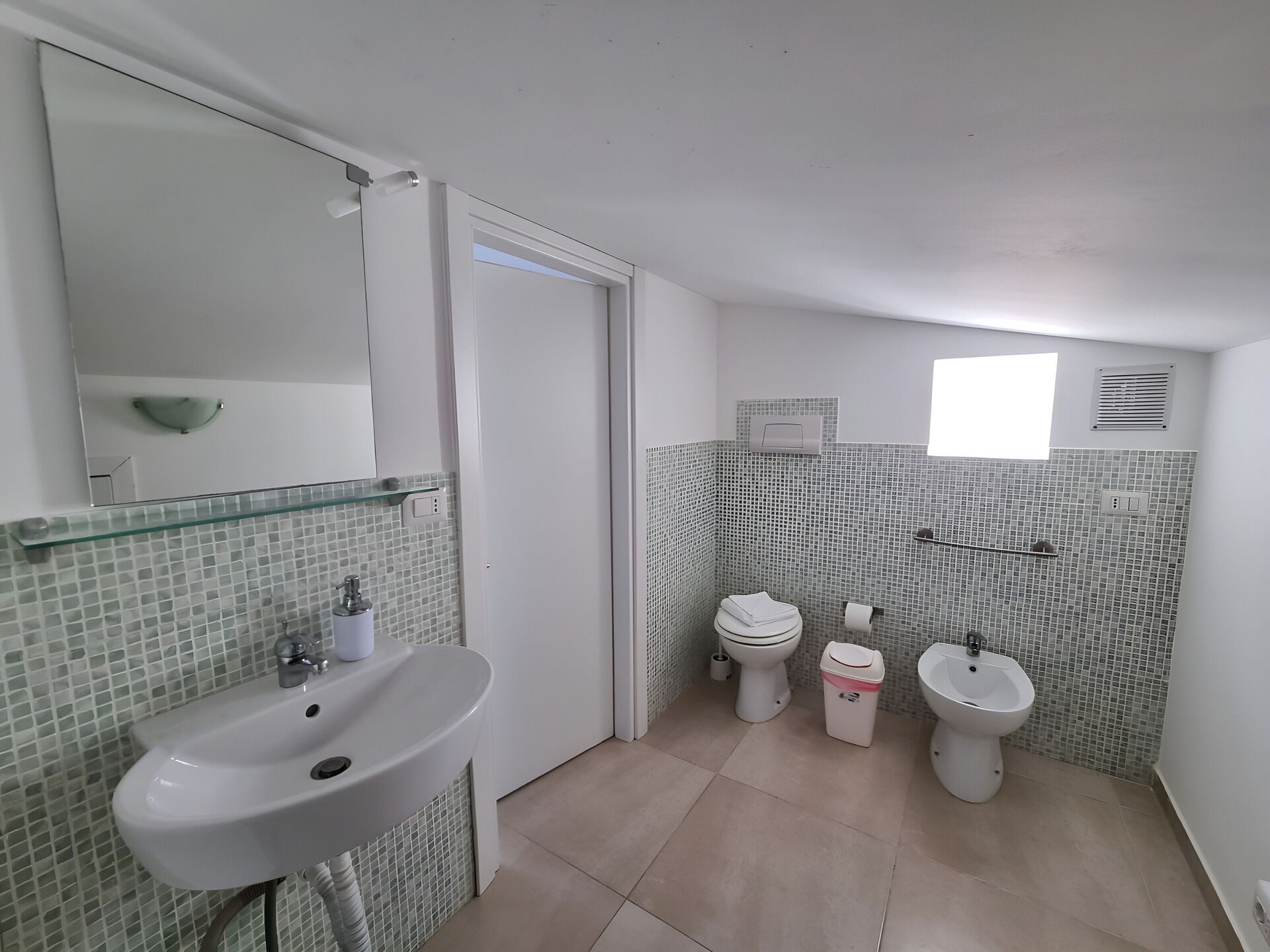 Bagno (4 m2): lavandino, wc, bidet, doccia, asciugacapelli.