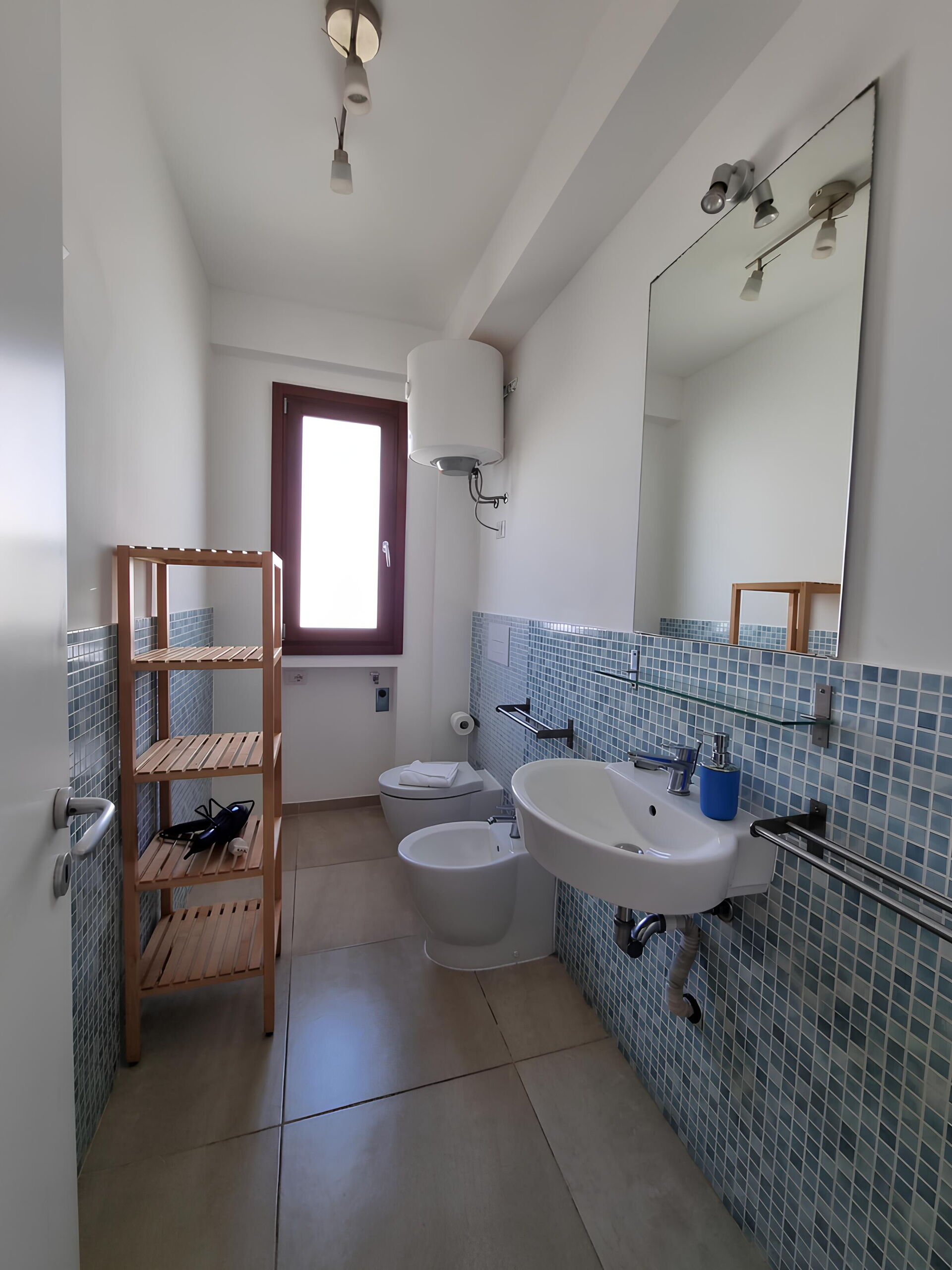 Bagno (4 m2): lavandino, wc, bidet, doccia, asciugacapelli, lavatrice.