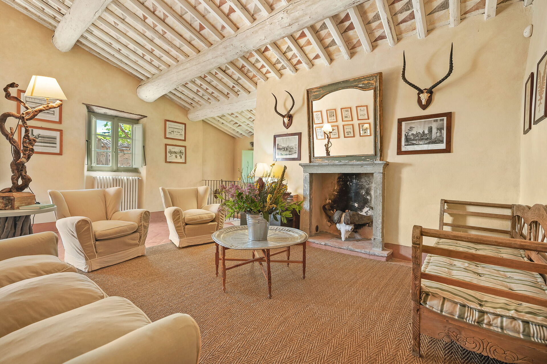 Soggiorno: divano, due poltrone, caminetto, internet WIFI, stereo hifi, uscita sul giardino.
