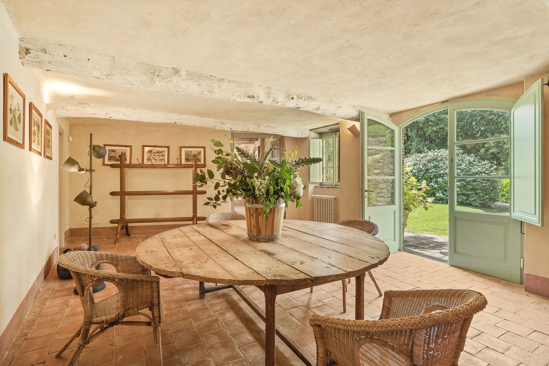 Sala da pranzo: tavolo da pranzo, internet WIFI, uscita sul giardino.