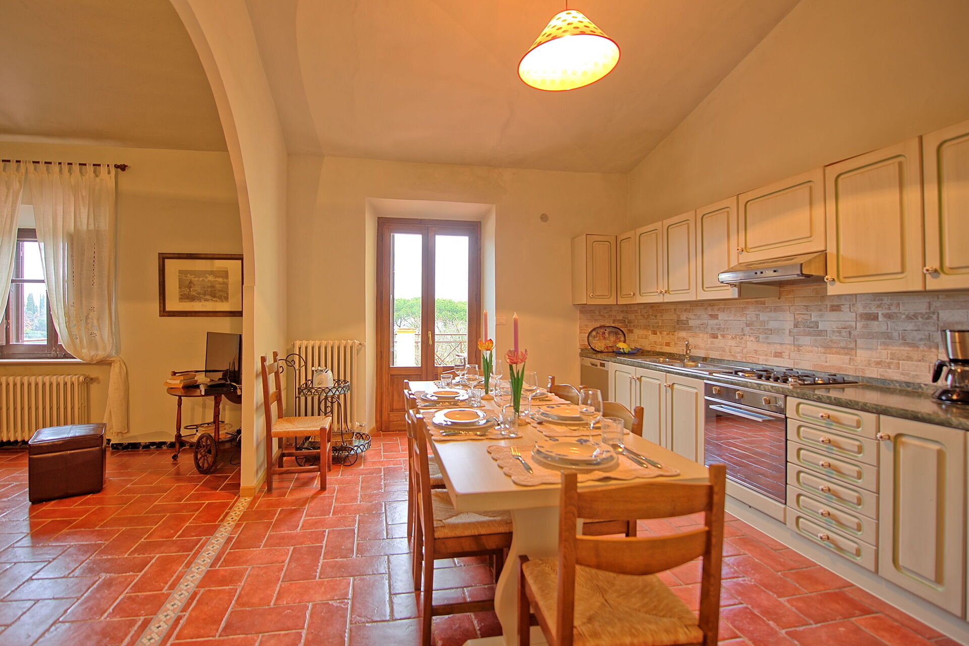 Servizi extra: cene e lezioni di cucina sono disponibili nella villa dei proprietari, che è situata all'interno della stessa proprietà, ma molto distante dalle due unità affittate (circa 400m) per garantire la massima privacy. I proprietari parlano molto bene inglese e possono organizzare tours, degustazioni di vini e servizi di matrimoni. Durante le lezioni di cucina, i proprietari guideranno gli ospiti nella scoperta dei segreti della cucina toscana tradizionale: imparerete come fare la pasta a mano come tagliatelle, pappardelle, pici, ravioli, tortellini e maccheroni, piatti toscani come la panzanella (pane e verdure di stagione), i crostini toscani, i segreti della cottura della Chianina alla griglia e dolci tipici.