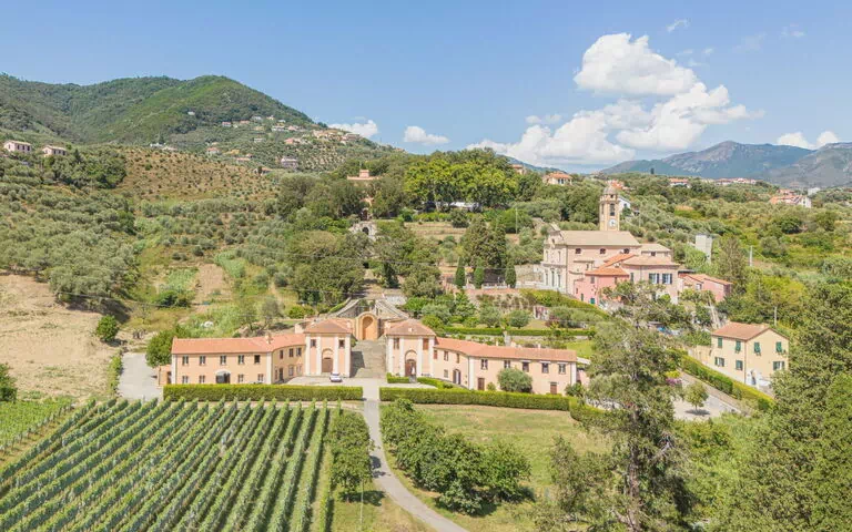 "Dimore dell'Esedra" è una grande casa colonica storica del XVIII secolo situata nella campagna serena di Sestri Levante, tra campi ondulati e vigneti. La proprietà fa parte di un'importante tenuta che comprende 8 appartamenti e si estende su 10 ettari, dove piante rigogliose, alberi maturi e un orto produttivo creano un'atmosfera di eleganza senza tempo. La casa rappresenta un rifugio autentico e raffinato immerso nella storia e nella bellezza naturale della Riviera Italiana.