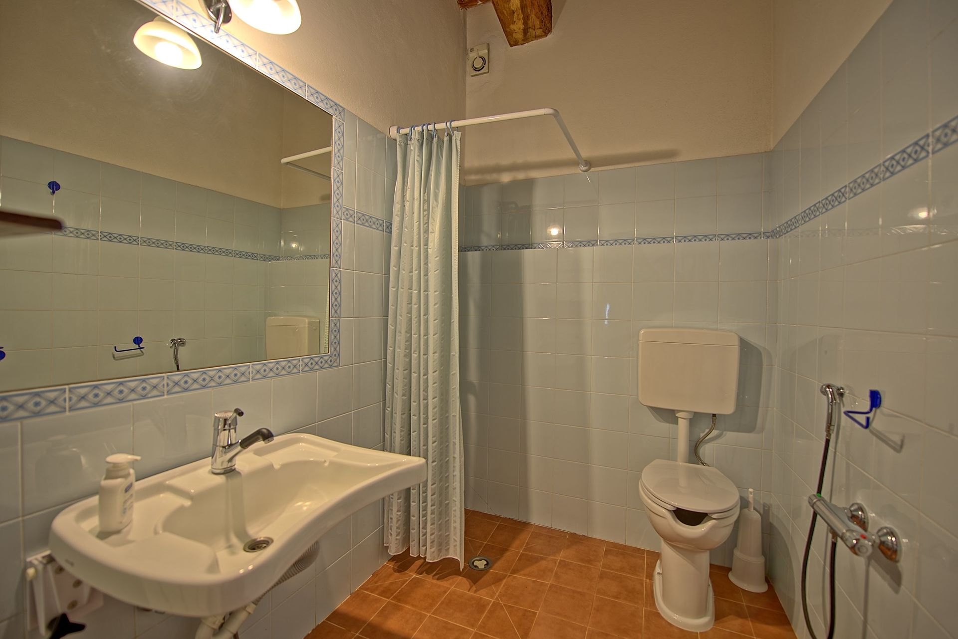 1° Piano: camera matrimoniale con piccolo bagno privato con doccia, camera con 2 letti singoli, camera con 2 letti singoli e letto singolo supplementare, bagno con doccia.