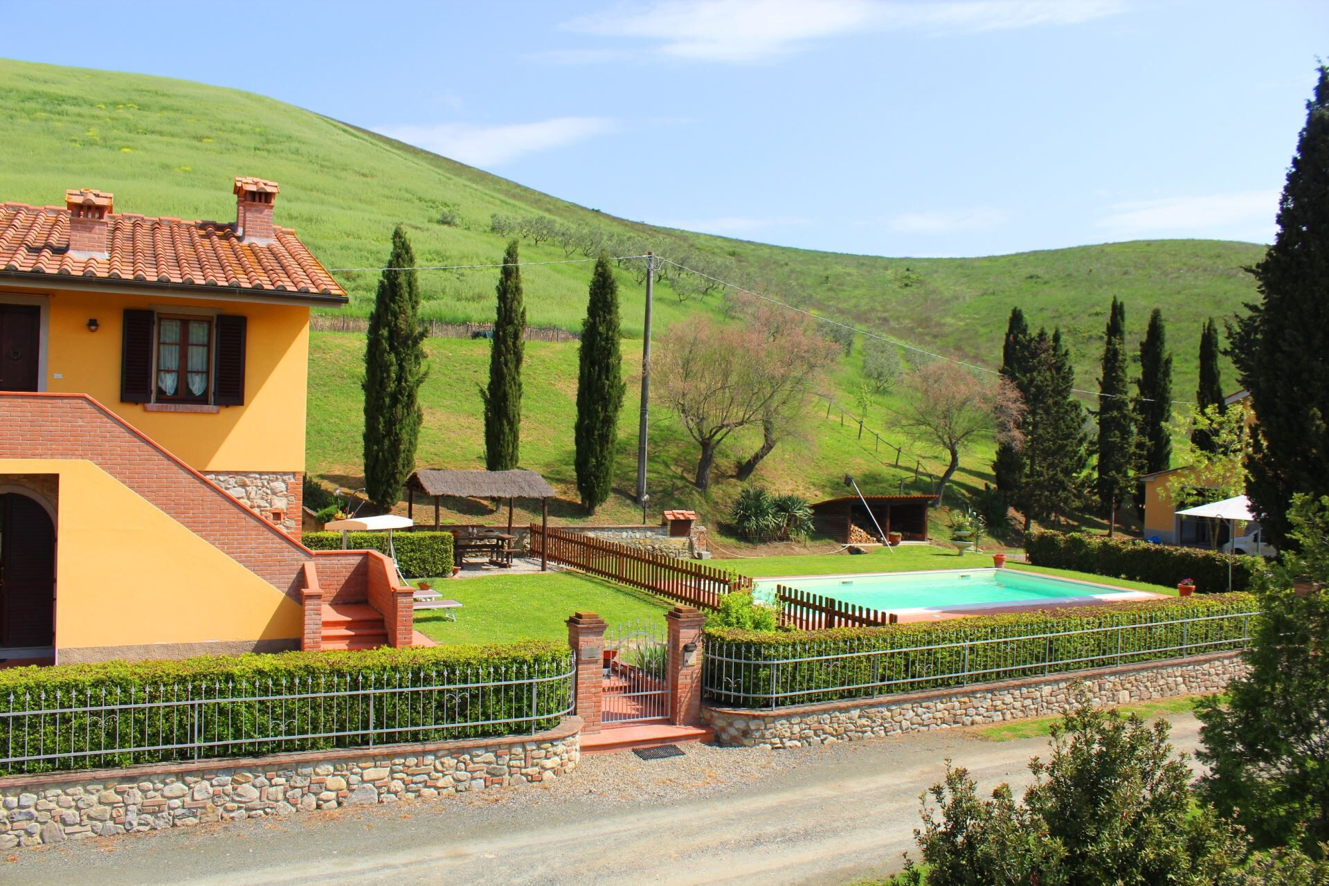 Trovate il casolare nella quiete delle splendide colline dell'Alta Val di Cecina, con una bella vista su infiniti e mutevoli paesaggi naturali. Morbide colline verdi, distese di campi coltivati color oro e cieli azzurri sconfinati, di tutto questo potrete godere dal giardino e dalla vostra piscina. Il posto perfetto, secondo noi, per una vacanza indimenticabile.