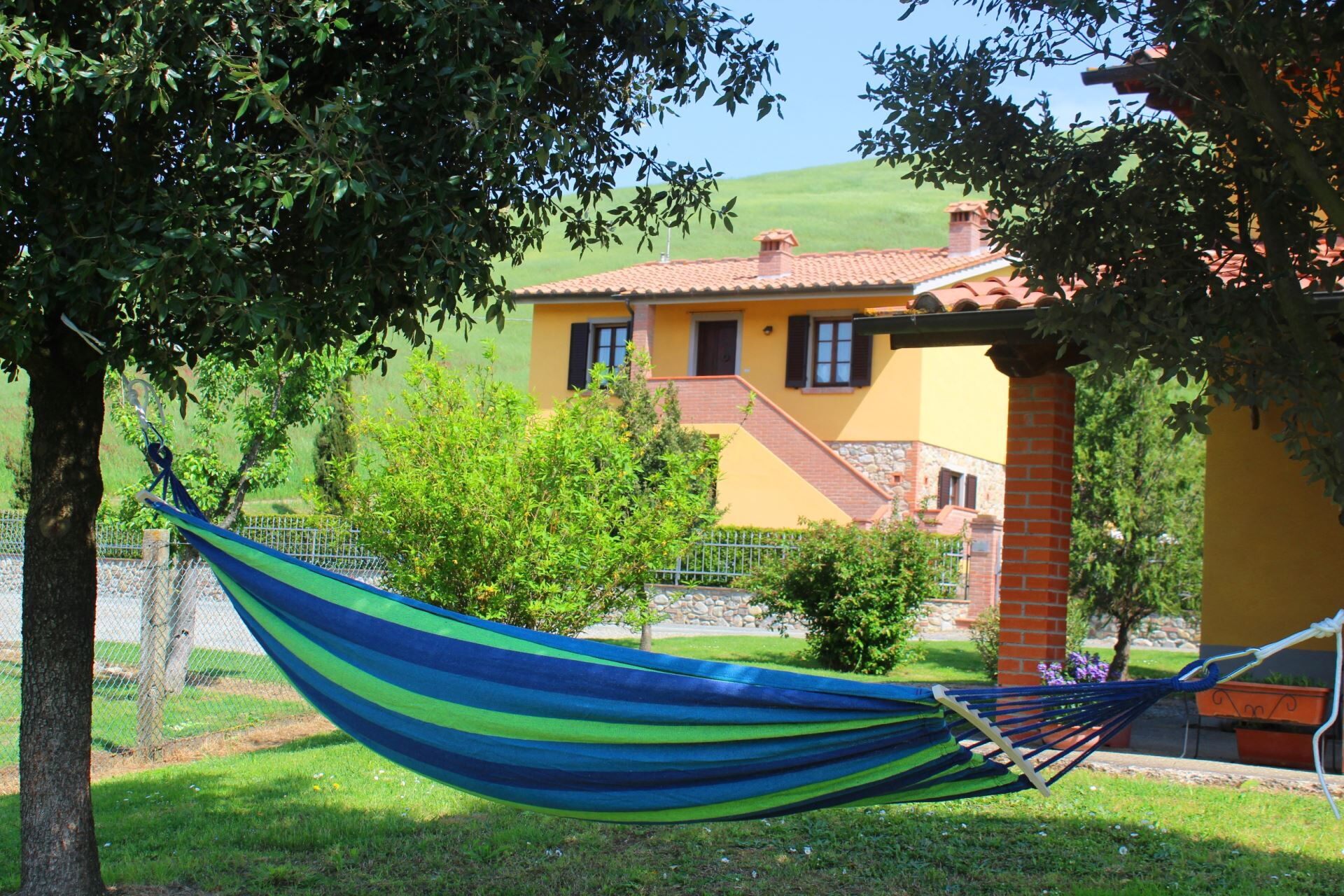 Nell'ampio spazio verde intorno al casolare trovate la bella piscina completamente recintata e ad uso privato delle dimensioni di m. 10x5, profondità m. 1,10-1,50 (aperta dal 01 Maggio al 30 Settembre). Nel giardino, per le vostre cene all’aria aperta e in compagnia un gazebo attrezzato, mobili da esterno e barbecue. A piano terra una comoda sala comune dotata di foro a microonde, tostapane, bollitore, frullatore e freezer, perfetta per le colazioni o per una serata tra amici.